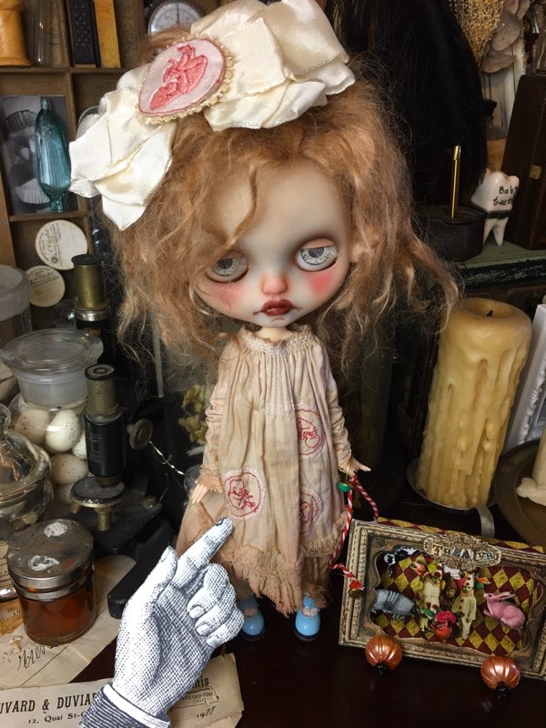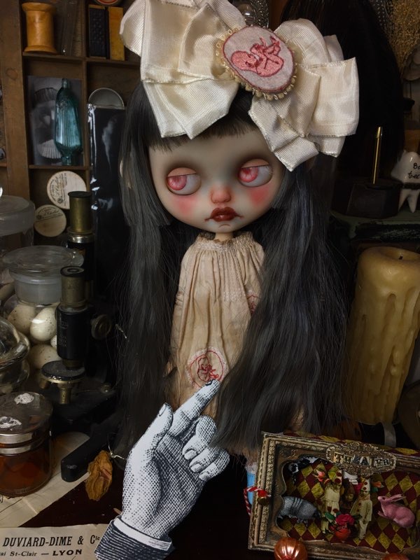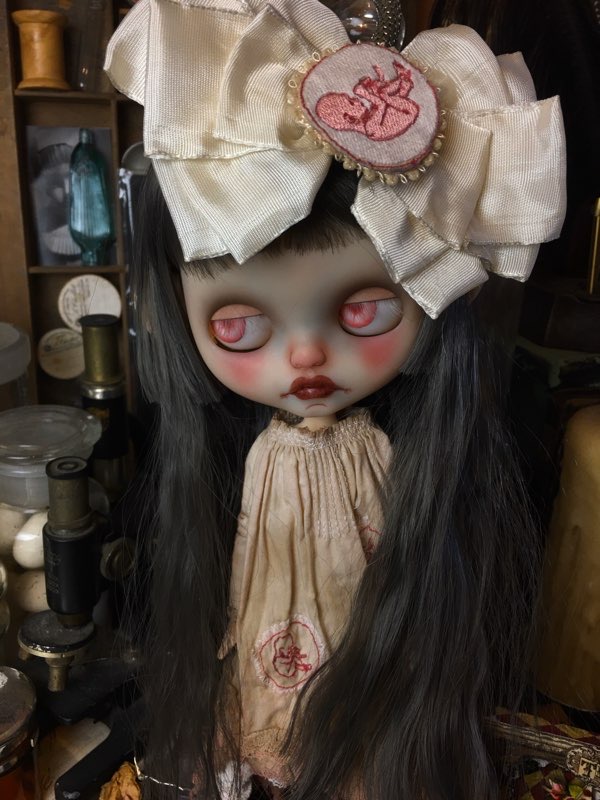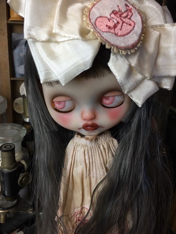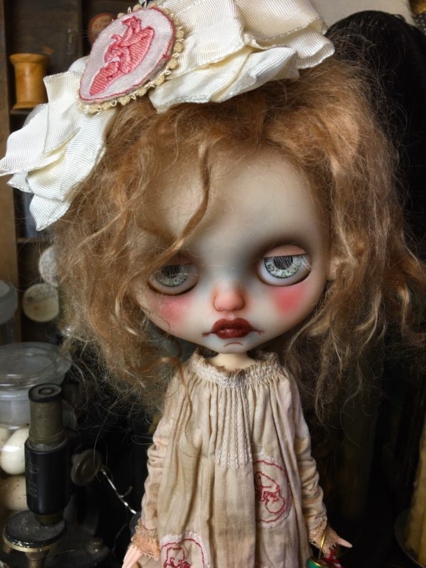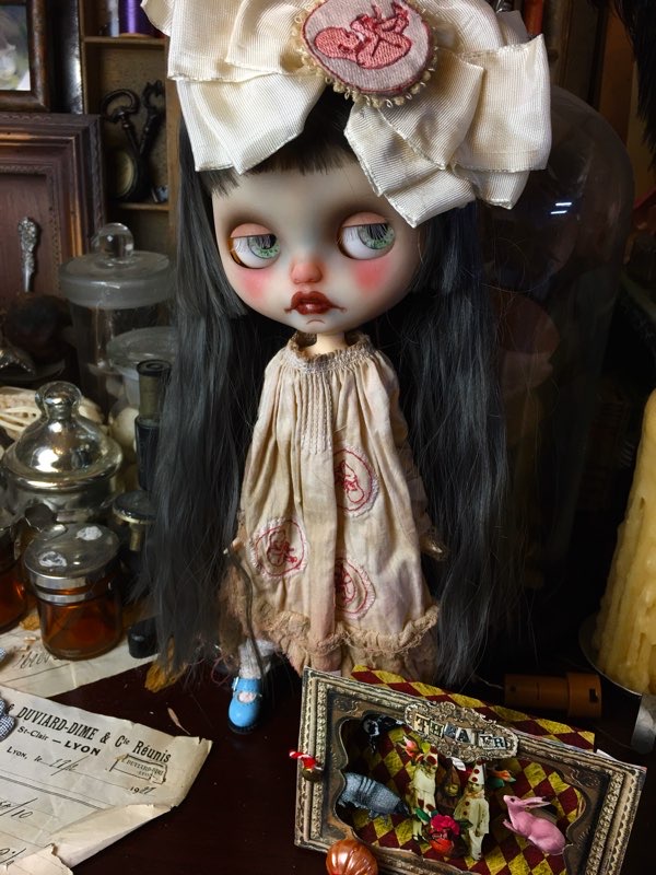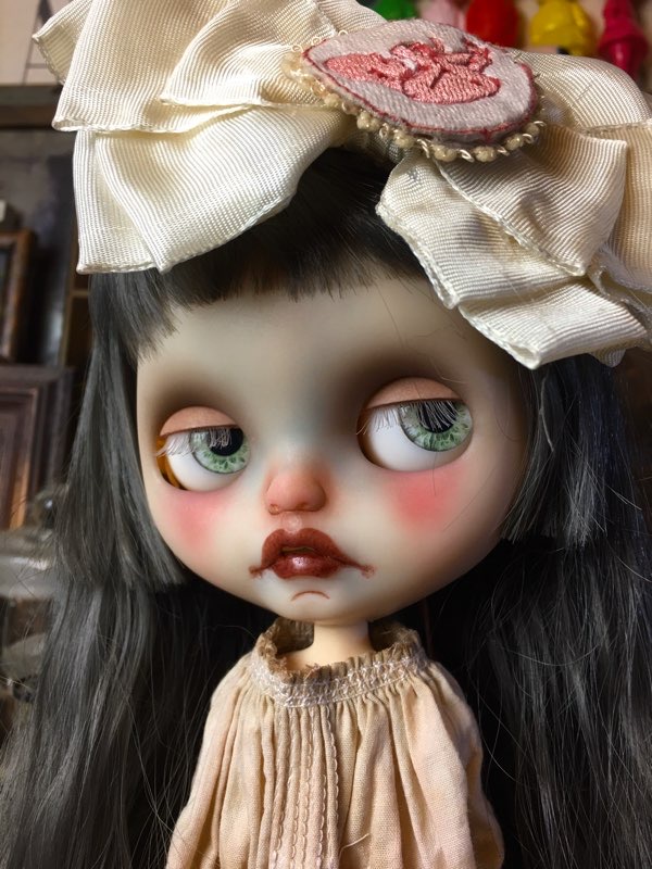 いっぱいの方々に入札をして頂き、 ウオチもして頂き、 応援もして頂き、 無事終了して、本日、すでに旅立って行きました。 今回は、テンカスでは初めてのご縁♪ というのも、昨年の「胎児の夢ワンピ」のショップの時に ワンピを買っていただいていたのでした\(^▽^\)(/^▽^)/ なんと、アデちゃんがファーストブライスさんという事で 光栄極まりますです!! 今年も、また、アデちゃんに続けっと、テンカス、妖しい子たちを 生み出していくつもりですので よろしくお願いいたしますm ( _ _ )m で、もう一つ、一昨年の個展のDMになってた子たち。 実は手元に残ってまして(^◇^;) そろそろヤフオクにでも出そうかなぁ。。。 なんて思ってた矢先。 お迎え先がヒョイと決まり、これまた明日旅立って行く事に なりました。 この二人。 本当に、ほんとに嬉しい限りです。 で、これまた、 なんとなく、ちょいとo(´^`)o ウーン… という部分を 残しながらも一昨年の個展に出品してた子を 思い立ってリメイク。 リメイク中ですが、ちょっと加工してみたら なんかいい感じの絵画風。 ちょっとペタリ。 ある程度、納得のいく子に リメイクできればいいなっと♪
