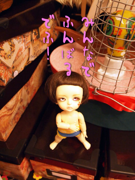 前回のヤフオクはアラートが機能せず、全然、知らんかった<(>o<)> しかし、今度は、eBayでがんばる事に♪ そして見事、ゲッツ( ̄^ ̄)v eBayで落札して、日本語でお取り引きできるのって、めちゃんこ楽で 嬉しいねぇ〜。 しかも、一昨日落札してもう届いちゃったりヾ(@゜▽゜@)ノ そして、めたんこ、倭羅@ワラにイイ感じ。 ヤサグレ幼児全開!!!!! ↓特にヤサグレてるかも(⌒o⌒;A ヘアがクサクサしてる。。。 そして、もう一人、ヤサグレ幼児と言えば、羅市@ライチ ちょっと大きいけど、ポケフェよりはイケるじゃん。 また、今度改めて、羅市は撮ってみよぉ〜。 大満足ぅ(〃⌒ー⌒〃)∫゛ 公演の方は、まだDMできてません(⌒o⌒;A 11月13〜16日(木〜日) 間に合うのか? と言ってる場合じゃなくて、 間に合わせるのだ! っつー事を昨日の稽古で再確認。。。 ほんとに、ヤルしかないわけであります。。。( ̄^ ̄)v |