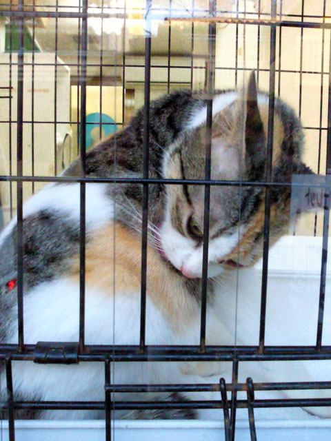 動物病院がある。 そこで「ねこあげます」の看板が掲げてあった。 ふんでもって、ちょいと窓を覗くと……。 「Σヘ(○д●)ノ あ、あじゅこ????」 と、目を疑った。 窓ごしにお化粧をしているその子はまるであじゅこのようなのよん。 あじゅこは こうでしょ。 すんげー似てるぅ〜〜〜!!! 運命の出会い??? って思ったけど、うちのマンションはペット2匹までなので お迎えすることはできないし……。 つか、「あげます」の猫がこの子かどうかわかんないんだけど(笑)(^_^;A いやー、ほんとに似ててびっくりだった。 あじゅこより、キリリとしたお顔かしらpupu (* ´>艸<)・:∴ いや、あじゅこもうちに来た頃はキリリっとしてたんだけど、 いつの間にか、丸っこいお顔になっちまったからねぇ〜(笑) で、この子に気を取られてて、ふと下を見ると マンマルっこいふくちゃんが覗いてて、 その奥にも、お猫が一杯。 ここって、お猫が一杯な獣医さんなの??? てことは、何かあった時、ここでお世話になったら いいわよねv(^ー゜)ノヤッター♪ マンマルっこいふくちゃん猫のおおあくび |
