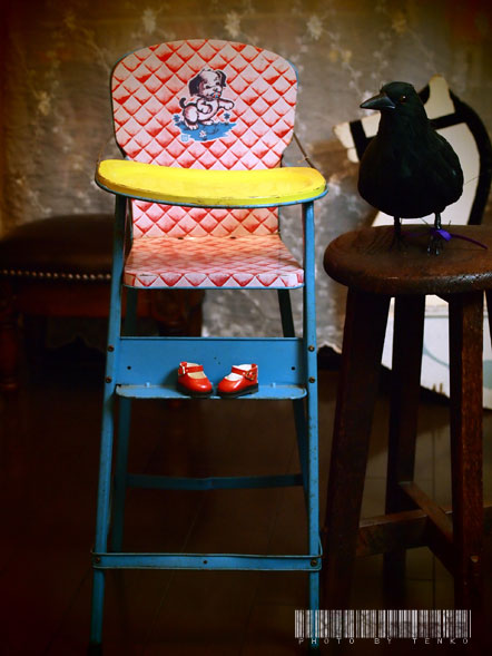 一番最初。 ベビヰドヲルさんで、ブリキの人形用のベビー椅子と遭遇。 めちゃんこかわいくて、お値段もそれほど高くない。 だけど、まだ最初のお店だったので、もしかして 他で運命的な出会いがあった場合もそなえて 最初から散財するのは控えて、もし帰りにご縁があったら……。 と、後ろ髪をひかれながらも、アンティークショップ巡りへと 旅立っていった私たち。 で、幸か不幸か、他では散財もせず、それならば と帰りに寄ってみるも、お店、閉まってた(^_^;A HPには6時までって書いてあったのになぁ。。。(笑) で、まあお泊まり会が終わって、冷静になってみても やっぱり心魅かれるモノがあってHPを覗いてみると 店頭で教えてもらったお値段より500円安い価格表示!! こ、これはぁ.+:。ヽ(*'0'*)ツ ワオォ!! さっそく電話すると、HP表示価格でいいとのこと! さっそく、買いにいきましたぜ!!! で、jちゃんのもとへ行くことに(//艸//) …ムフ♪ そんでもってね、 お使いに行ったお駄賃で、jちゃんが 取りにくるまで、遊んでもいいって♪ ワ─+。:.゚ヽ(*´∀`)ノ゚.:。+゚─イ♪ さっそく、遊んじゃってます!!! 全貌はこんな感じ。イエローのトレイ部分がめちゃんこかわいい♪ ラノコと魔導士組 そして、おコメちゃん (≧ω≦*) イヤン♪ めちゃんこかわいい♪ jちゃん、早く、取りにきてぇ~!! でないと、うちのになっちゃうよぉ~~~(笑)