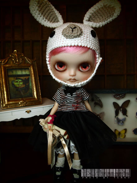 もう1着は どっちにするか……。 イメージはできてるものの、実際にカスタムしてみないと わかんないもんだよね。 どっちもダメかもだしさ(;^ω^) で、色々ウィッグを出して、試してみてるうちに なんかおコメちゃん、LDD風で ウィッグってばさ、あり得ないくらい短くて小さいんだけど ウサウサ帽を被るとなんか包帯してるみたいで ミョ〜にツボったので記念撮影(笑) しかし、1週間前に注文した手芸用品(リボンとか生地とか) まだ届かないよ。 まあ、発送は「10日以内」ってあったけどさ、 これって、普通最大かかっちゃってな時間が書いてあるから 普通、10日以内つったら、もうそろそろ発送にならんかねぇ〜 q( ゚д゚)pブーブーブー