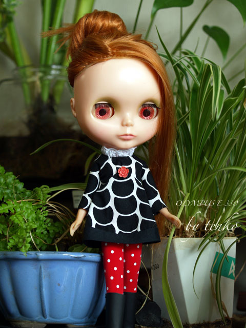 しかし、ヤスデは生きて動いてるのが3匹くらいしか見つからなかった。。。。。 何故????? 私は5匹は見たんだけど。。。 昨日、撒いた駆除薬が効いて、死んじゃったとしてだよ、死骸は? 溶けちゃうの? ふんな、バカな。。。。既に土に返った???? ふんな、バカな。。。 謎、謎、謎ぉ〜〜〜〜!Σ(→o←;;; 根っこの土もかなり落としたから、根っこに付いてるってーのもあり得ない。 いや、あるのか???? とにかく様子を見ましょう。 鉢から出したら、「ヤスデの生きたのや死骸がワラワラワラ〜〜〜の図」を 想像してた私は、拍子抜け。 旦那くんに「そんなにいかなったんじゃないの?」と。。 いや、絶対、絶対にいたんだから(◎`ε´◎)ブゥーー! 昨日到着したUSEDブライスについてきたおまけ服。 トップスとお帽子。「私の好みじゃないかも??」って思ってたけど、 手持ちのスカートとニー&トゥーのタイツとブーツ、bagを合わせたら なんかイイかも♪ で、当の本人のブライスの方は、現在Rちゃん宅でメンテ中。 ワクワクであります。