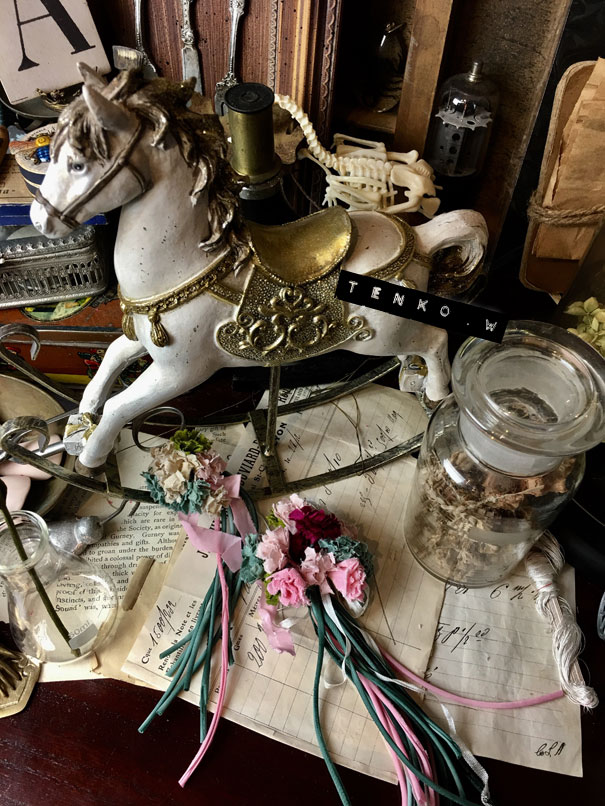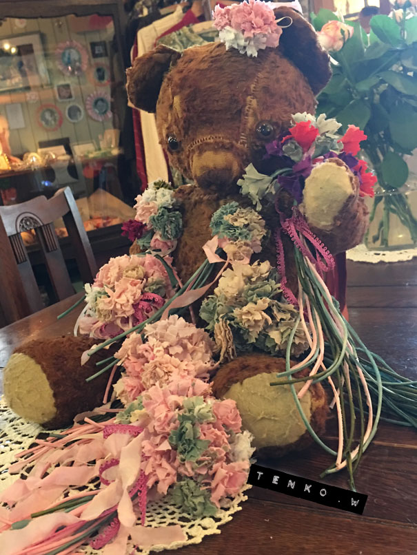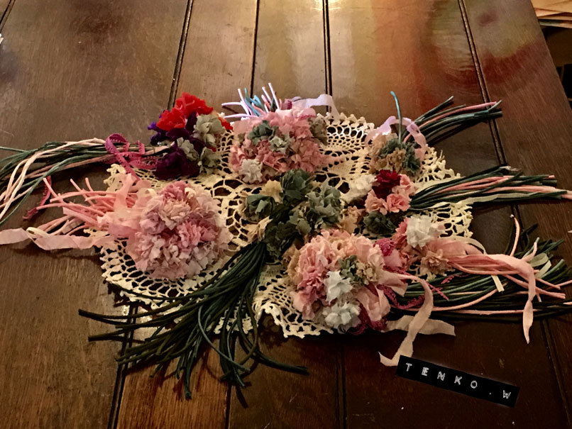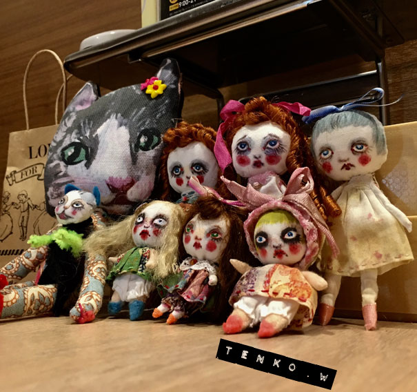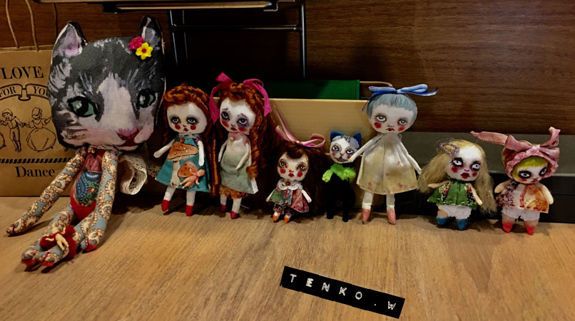 今回は、斜茎祭りです。 斜茎っていうのは、茎にワイヤーが通ってなくて 布がストロー状になった茎の事で コテを使って作るんですが 金魚さんが「斜茎テープを手に入れたので、斜茎やろう!」 って事で、斜茎祭りになりました.: *:( *´艸`).:゚+ 斜茎用の布って、バイヤスに細く長く、作らないといけないので 通常はすんごい手間なんだけど、 それがもう用意されてるなんて、夢のよう・.*:・(*´-∀-`*)ウットリ・.*:・ で、それ用のお花を作っていきます。 もちろん斜茎も平行して順番に(コテの順番待ち)作っていって♪ いつものように、作りかけの状態もかわいい♥️ そしてケーキタイムは、いちじくのケーキ!!!! 今回の展示に合わせて、少女なクッキー(/▽\) イヤン 今回は案外簡単に終わるかと思われた終盤にさしかかり やっぱり、トラップが用意されていたミ(ノ;_ _)ノ=3 バタ... お花その物を作るのはそんなに大変ではないのだけど 今回はそのクタっとした斜茎を まとめるのに、皆な意外に苦戦(;´▽`A`` だけど、なんとかまとめあげて、みんなの作品を撮影ぃ〜! ちょっとわかりにくいので、クマさんにモデルになってもらう。 この他に、久々にMティが参加で 腐ったひまわりを作って(笑) 木曜日初めて参加のSさんを加えて M、Jちゃん、Iミン、Aちゃん、ひまわりのMティ、そして私と 大所帯なワァクになりました♥️ そして恒例、うちへ帰ってのほくそ笑み.: *:( *´艸`).:゚+ やっぱりうちへ帰ってみると、かわいい(〃∇〃) てれっ☆ 今回はもう、ワァクの時間にドールサイズ作りましたわ。 茎が長いけど、逆にリボンのようでいいかも(〃 ̄▽ ̄〃)エヘッ たまにはおコメちゃんも甘く、ヘアアクセなど♪ 既におコメちゃんも満足げ。 その他にも、お土産?があったので おコメちゃん機嫌がよいのだ。 これは、また別の機会にお披露目。 今月もまた楽しいワァクでした!!! あ、そして恒例のワァク前のjちゃんとのブランチ。 布ドールたち大集合。 でもって、来月のワァクは水曜日組と木曜日組の 合併ワァク。 すごい人数になるのかな??? ┣¨キ(*゚д゚*)┣¨キ