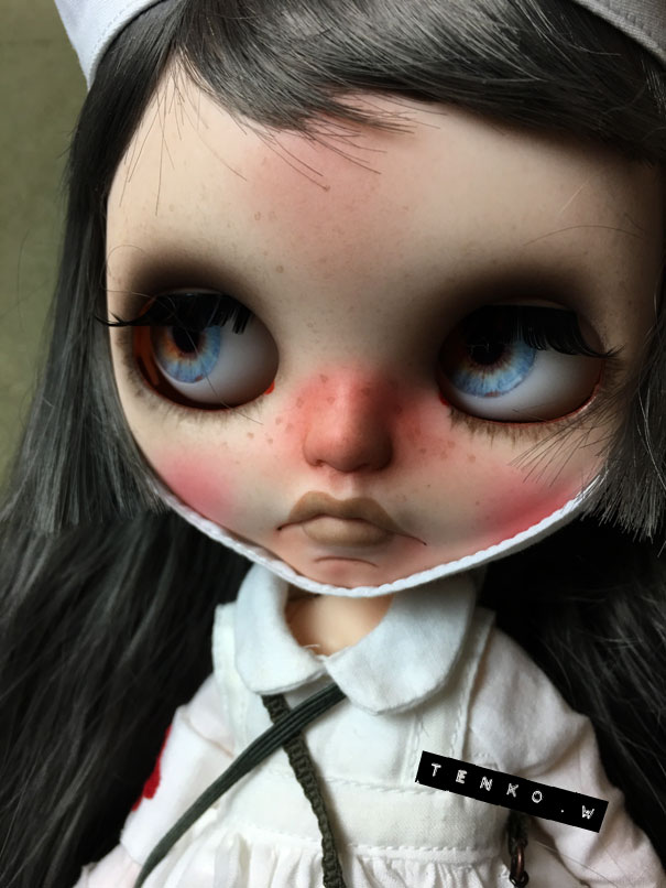 すっかり遅くなってしまった テンカス。 恒例のちら店です。 今回のコンセプトは 「ナース」 でもまあ、テンカスだもの ただのナースじゃなくて マッドなナースでもなくて(笑) まあ、ちょいとマッドだけど ただのナースじゃないのは 確か.: *:( *´艸`).:゚+ ヘア色とスタイルはまだ保留ですが そして、OFは少し汚し入れるかなぁ。。 とも考えチウですが、本体は完成です。 今回、フェイス全体にそばかすを散らばせて 少し変わった肌の質感に。 ( ̄^ ̄;)ウーンパソ画像だとよくわからないかなぁ。 でもまあ、そんな感じで( ̄▽ ̄;) 来週水曜日あたりに出品できたらいいなっと 思ってます。 さて、仕上げ、っと、その前に すっかり秋な関東だけど アイス、アイス。。。タタタッ。ヘ(;・・)ノ←最近、恒例(笑)