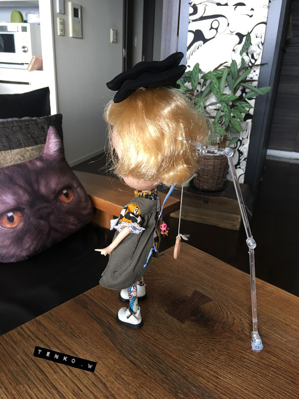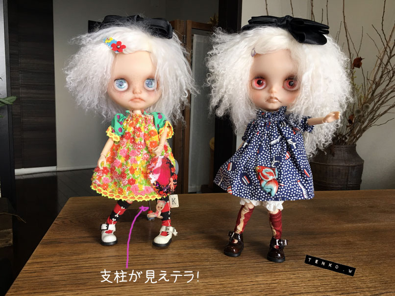 ブライスたちが自立してるみたいに 見せるには。。。。。 って事を書きました。 ブライスの付属品のスタンドの支柱部分だけを使えば .:゚+☆⌒(*^ー゚)b グッ!! ってな事でしたが、 Rちゃんがコメに「スタンディングオベーション型」を使ってる。 という事を書いてくれて、そっか、それだと もっといいかも。。。。 っと、私が持ってる唯一のスタンディングオベーション型 (うさぎのきぐるみのブライスにデフォ付属)の ピンクの支柱でやってみたんですが、頭の所で 固定されてしまって、角度が変えられないので どうもうまくいかない。 で、そいえば。。。 オビツボディ用のマルチスタンドってば 透明のがあったなあ。 と、ちょうど、他にも買うものがあったので 買ってみました。 320円というお値段が高いのか安いのかビミョ〜な所です。 だって、ブライスのスタンドは付属品だから改めて お金かからないしね( ̄▽ ̄;) amazonで送料無料ないか探したけどなかったし これ単体よりも高い送料を出して買うかどうかってのも ビミョ〜なお値段(大量に買うならいいかもだけど まずはお試しだからさ)。 で、これ、1/12から1/6まで使えるっという「マルチ」なだけに プラモみたいに組立式になってます。 必要と思われる部品だけを使って組み立ててみた。 さっそく、ちょっと黄昏れた感じでミモちゃん、立ってみる。 うんうん。 横から見ると こんな感じ。 この時は後頭部をホールドしてますが、 ブライスの後頭部の穴の部分に、この時は 2本をギュっと入れてみてもいい。 こっちの方がしっかりするかな。 (ホールドの時はUの字の支える部品を大きめに、差し込む場合は一番小さいのがいいかな?) っと、書いても実際に手にしてみないと、何かチンプンカンプンだろうけど( ̄▽ ̄;) ミモはウィッグじゃないけど、ウィッグの子で後頭部の穴が隠れている子が いると思うけど、逆にウィッグで覆われて、しっかり固定されてる感じがする。 ウィッグで覆われてる時は、穴に入れるのは1個だけでもしっかりするわ。 おコメちゃんとか、おコワがそうだ。 ふむふむ。 おコメちゃんが、オビツのでおコワがブライスの支柱で立っている。 で、アオリで撮ると、ブライスの支柱だと長さがないため 支柱が見えちゃうけど、オビツのスタンドのだと 遠くに支点がおけるので、見えないね♪ で、横から見ると 今度は、オビツのスタンドの方が見えちゃうんだけど それでも、ちょこっと位置をずらしてやれば 見えなくなる。 この時、ブライス本体を持って、支点をずらしただけで すぐに自立したよん。 少し、ポージングが変わったけど それも逆に自然な感じ。 で、ブライスの支柱とオビツのマルチスタンド。 どちらに軍配があがるかってと。。。 (ー'`ー ; )( ̄^ ̄;)ウーン 好み? え? (*'д'*) どちらもそれぞれにダメな所があり それぞれにいい所がある。 そんな感じでする。 単体ではそんなに高価なものではないので 何かのついでにゲットできるような事があったら ちょいと試してみるのもよいかもでする。 あ、支柱の下にはこちらも、シリコンの滑り止めを 巻きました。 |