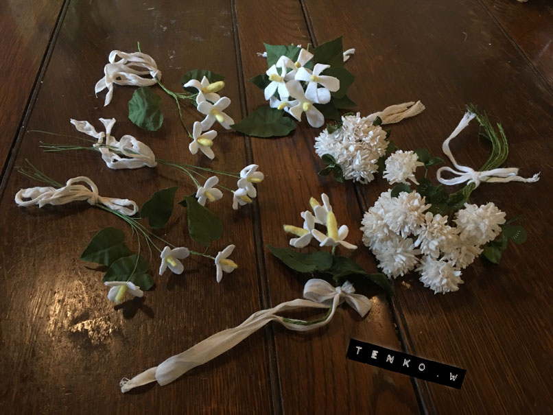大荒れになるとか? だったけど、昨日はスカっと晴れた暑い夏日 月イチの金魚さん@下北バブーシュカの布花ワァク。 ワァクの前にjちゃんとちょいとブランチマック。 今回はMと私はドクダミ、jちゃんとAちゃんはシロツメクサの ワァクでした。 シロツメクサは自己流で作ってただけに 金魚さんの作り方も見せていただいて、とっても参考になったぁ♪ んでもって、この日は、青の羊さんの個展の最中だから ケーキのクッキーが青の羊さん!!.: *:( *´艸`).:゚+ 梅雨だから抹茶味のカエルさんも! お二方とも美味しゅうございましたとも( ̄¬ ̄) ジュル… みんなの作品を揃えてパチリ! ドクダミってば、その匂いと名前でなんか 悪いイメージがあるけど、こうやって 布花にしてみると、シロツメクサと一緒に ホワイト感が可憐で、ブライダルなイメージじゃん.: *:( *´艸`).:゚+ また、おコメちゃんにせがまれるから今回は ワァク中に小さめのお花も。 おコメ「まあ、かろうじて小さいけど、私たちサイズの標本には まだ大きいだわさ」 ( ̄▽ ̄;) あ、そうですか。。。。ミ(ノ;_ _)ノ=3 バタ... また、そのうちに作りますから、しばらくは勘弁してください(笑) そして、来月はダークなひまわりを作る予定です。 今回も楽しい素敵なワァクを金魚さん、そして参加者のみなさん m(*>▽<*)m アリガトッ