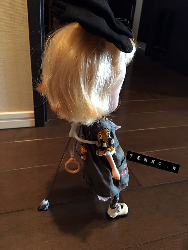 うちは、さっき光化学スモッグ発生の 放送がありましたぜ。 もう、梅雨は明けたのか? 台風がやってくるしねえ。 ってな事で、ってわけじゃないけど 昨日、Aちゃんが 「ピュアニーモのボディの子たちって、 どうやって自立してるみたいに するんだろ?」 ってな事を聞いてくれて、 透明のアクリル棒をYの字に細工して 後ろからつっかい棒として立たせる か、 首にテグスをつけて吊るす か、 てな事だよね。と確認してて でも、透明アクリル棒を細工するって 結構めんどくせ〜、それに透明アクリル棒って 案外、高いしぃ┐( -"-)┌ なんて、前から思ってたんだけど アクリル棒でなくても、しっかりした金属なら 角度さえ気をつければ、見えないよな。。。と その時 ハッ! Σ(・ω・ノ)ノ! ブライスのスタンドのさ、支えてるあの支柱。 使えるんじゃね? って事で はい! おコメちゃんがまず立ってみました。 横から見ても、何かに寄りかかってる気配はないでしょ.: *:( *´艸`).:゚+ そして、廊下におコメちゃんが、ミモちゃんが 立った、立った! 後ろでまったりしてるヒトが居ますが、気にしないでやってください( ̄▽ ̄;) そして、おコワも! 立った、立ったぁ〜〜! おコワが怪しい手つきをしてるのは見逃してやってねん.: *:( *´艸`).:゚+ さて、後ろから見てみましょ! こんな感じ、近寄ってみると。 ネッ(*´ 艸`)(´艸 `*)ネッ スタンドの支柱で立ってるでしょ! 細工は簡単。 画像のように、先端にシリコンとかの じゅうたんの滑り止めを小さく切って 貼るだけ。 私は、いい加減に切って、マステでグルリと 巻いてるだけですしね(*´σー`) ヘヘ… これで、みんな自立ができる子たちに 成長しました。 角度さえちょっと注意してやれば 自立する子たちに、なれますぜ!! 試してみてね。 PR