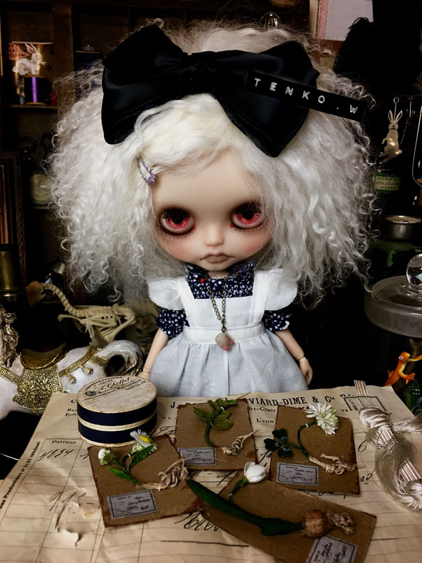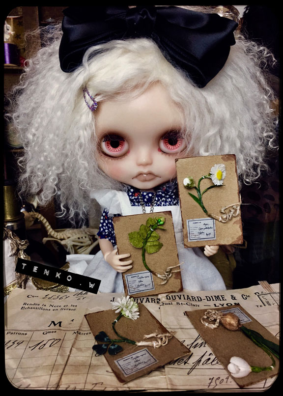 いよいよ来週の明日と迫ってきてて 待ち遠しいような、┣¨キ(*゚д゚*)┣¨キするような 楽しみなような、怖いような……。 久々に本番を迎えるこのイローンなモノが 入り交じった精神状態に なってまいりました(笑) とにかく楽しめばいいかなっと それを一番に思っているのですが、 なので落ち着かず、またドールサイズの布花など 作りました。 今までスノウホワイトとシロツメクサの 2種類があったのですが 新たに、ハルジオンとユーカリ、作ってみました。 ユーカリは人間サイズでは作ってたんですけどね。 おコメ「今回、新しいのは、この2つ」 おコメちゃん、この可憐なエプロン姿も 板についてきた感じ.: *:( *´艸`).:゚+ 少しずつ種類を増やしていきたいな。 試演会が終わったら、カスタムの方も 着手したいなってな気持もあったりしますが また合間を見て、ドールサイズの布花標本も ショップにあげていけたらと思っておりまする。 本日は、久しぶりの本降り ブルブル…{{{{(;>_<)}}}}…サムイ…です。