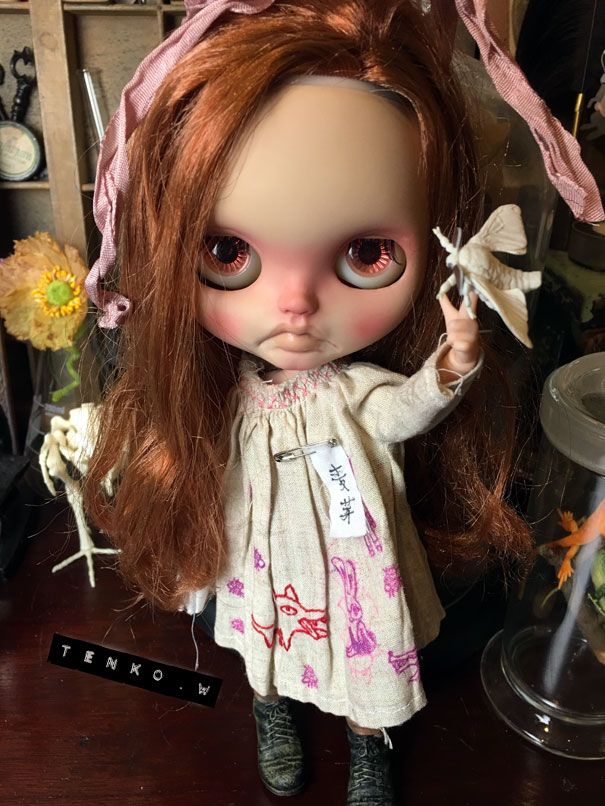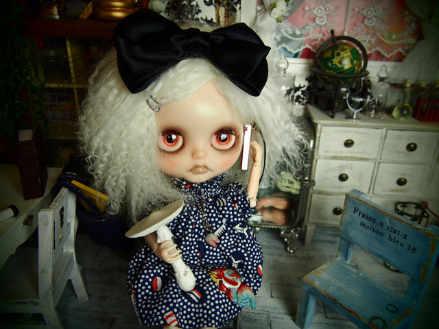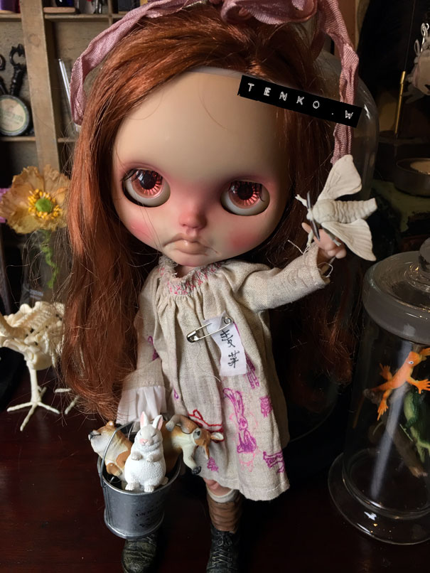 おコメちゃんとおコワは絶対に 間違えないんだけど リカスタムを何度もしてる子たちは その都度、イメージが変わるので 名前を変えたりしてて、 結局、どんな名前に落ち着いたのか 忘却の彼方へいってしまうことがある(;´▽`A`` ので、今回、エボニーのアオコのリカスタムを きっかけに、名前が決まってる子たちには 名札を付けてみた(笑) 一番左のハリコは忘れないけど、一応ね。 一番右は今回、新しく付けてみた「ゲンマイ」という事で(笑) で、さっき、「エボニーのアオコのリカスタムを」と書いたけど そうなんですの。急に思い立って、昨日今日と アオコにリカスタムに手を付けてしまった。 前のアオコはこんな感じ。 この頃はパンクな感じとかマイブームだったので 青いリップ。なのでアオコだったのね。 でもって、リカスタムしたい子は、あともう一人居るんだけど その子は、また今度って事で、アオコカスタム。 アオコでなくなった(爆 まだ、唇が直したい部分があるんだけど、今回は この辺で。 なので、まだ名前はないんだけど、空の名札付けてます。 もとがエボニーだったから「エボコ」ってのもあるけど。 やぱ、穀物植物系の名前にするかしら? ハリコは、もとが「ハリウッド」だから「ハリコ」だけど あとは、おコメちゃんを始めとして、穀物植物系だもね。 「めめ」ちゃんは「芽々」ちゃんだしさ。 おこげちゃんはお嫁に行ったから、「コゲコ」でいっか。。。 と、またしばらく考えよっとさ。