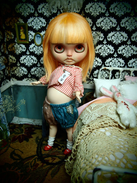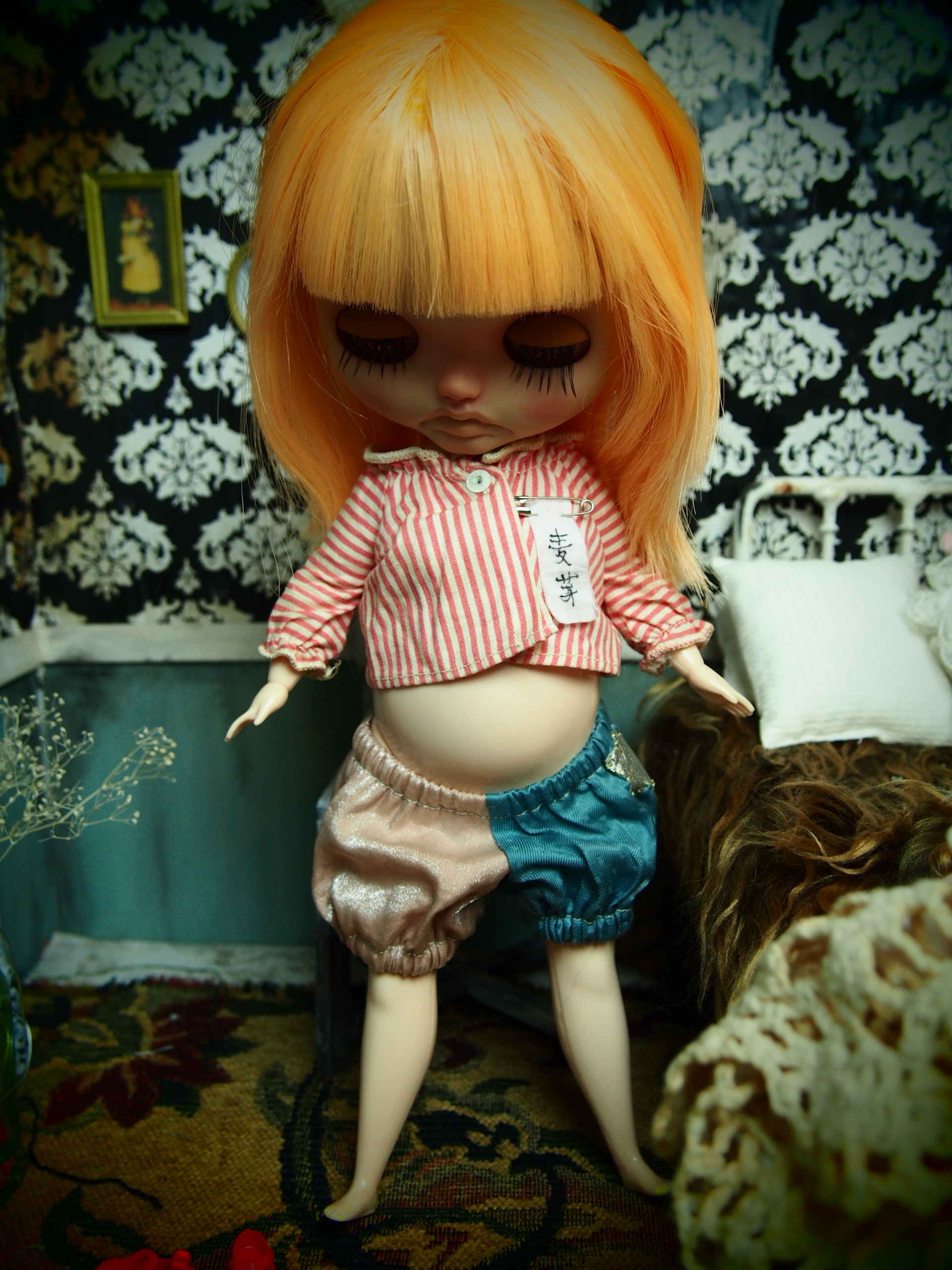 麦芽。 前回のお話は こちら↓ 「目が覚めたら……」 でしたが。 その、つづきです。 麦芽「(ノ_-;)ハア…」 スマホ片手にふかぁ〜い、深いため息をついておりまする麦芽。 その数分前。 クワッ、クワッ、クワッ(←スマホの着信音を「アヒル」にしている麦芽) とスマホが鳴りました。 その相手は おコメ「あ、麦芽。体、どう?」 麦芽「え? どうって?」 おコメ「何かこう、体に変化はない?」 麦芽「それがね、それがね……(?ω?) な、なんで、おコメちゃん わかるの?」 おコメ「やっぱり変化あったのね?」 麦芽「やっぱりって?」 おコメ「お腹出た?」 麦芽「(ノ_・、)シクシク… うんうん、そうなの。お腹出た。。。(?''?;) だから、なんで、おコメちゃん、わかるの?」 おコメ「(〃 ̄▽ ̄〃)エヘッ あ、それはね……」 と、おコメちゃんが話し始めます。 昨日の昼下がり。 おコメ「あ、麦芽? あのさ、今からスイーツ食べに来ない?」 と、おコメちゃんから麦芽へ電話があり。 食いしん坊の麦芽は、そそくさとおコメちゃんの 所へやってきました。 おコメ「これさ、ミハギさんが作ってくれたんだけど、私一人じゃ 食べきれないしさ。麦芽、好きでしょ?」 麦芽「w((* ̄ ̄0 ̄ ̄*))wワオッ!! おいしそぉ〜〜〜! いいのぉ?!」 おコメ「いいの、いいの。一杯食べて♪」 麦芽「おコメちゃんは食べないの?」 おコメ「私、そんなに甘いもの好きじゃないし。お腹一杯だしさ」 麦芽「じゃあ、いっただきまぁ〜す」 と、麦芽は、出されたスイーツをパクパクパクパク頂きました。 そして、一夜明けてみると、お腹がぷっくら!! おコメ「あのね。あのスイーツの中には、『ハラデルタケ』が入れてあったのよ(〃∇〃) てれっ☆」 って、おコメちゃん、照れてる場合かい!ヾ(^o^) オイオイ 『ハラデルタケ』とは おはぎ谷に生息するキノコの一種で。それを食べると、翌日からお腹がぷっくら出て 肥満体型、または妊婦体型状態が約1週間は続くというキノコである。 ( ̄▽ ̄;) おコメ「一度試してみたかったのよ。ミハギさんとかは、最初っから お腹出てるしさ。それでちょっと麦芽に試してもらったの。(〃 ̄▽ ̄〃)エヘッ」 麦芽「エヘって。。。。(ー'`ー ; )」 おコメ「大丈夫よ。1週間くらいしたら、元に戻るからさ♪」 麦芽「……1週間くらいしたらって……。(*´Д`*) 〜зハア〜。。。油断してた。」 <(;~▽~) おコメちゃんがいつになく優しい時は、警戒しないとねえ、麦芽。 だって、ほれ、麦芽、気がつかなかったの? この小悪魔な企み顔に。 おコメ「(( ̄ー+ ̄)ニヤリ…。)」 実験が成功して小悪魔というより かなり悪魔なおコメちゃん(;´▽`A`` おコメ「実験まずまず成功ね。これを何に生かすか、 考えるのが楽しみだわ。フフフフフ」 ってな事で、今回のお腹ぷっくら事件はおコメちゃんの 実験台にされた麦芽の悲劇でございました<(_ _)> で、このボディ。 数年前からフリッカーとかで見かけていたんだけど ebayもamazonも海外発送してくれなくて 国内amazonだと、9000円くらいしちゃって┐( -"-)┌ 半ば、諦めていたんだけど、最近、ebayは 独自の海外発送システムGSPを初めたので(ちょいと割高だけど) ふっと思い出して、見てみたら 9.99ドル(JPY1132円)開始のがあって、入札しておいたら ゲットできたぁ! で、誰のボディかといいますと。 The Drew Carey Show Mimi Bobeck Doll というお人形。 そのままでも遊べるけど、少し首のあたりとか加工した方が よさげだけど、なかなかぷっくらボディがかわいいのであります。 で、このボディ、2つゲット。 カスタムっことしてヤフオクに出してみようかなあ。。。 と、画策中。 PR ヘアスタイルを変更した麦芽。 スヤスヤと眠っております。 折しもすんごい風。多分、春一番なのでしょうね。 吹き荒れて、風の音で目を覚ましました。 麦芽「うーん。も、ちょっと寝てたかったのに。ネムネム…… ???? (?ω?) なんか体が?」 麦芽「え? (?ω?)」 麦芽「えぇ〜〜〜!!!???」 麦芽「Σヘ(○д●)ノ な、なんと体が膨らんでるぅ〜〜!??」 麦芽「お腹出てるし<(;~▽~)」 (?ω?)(?ω?)(?ω?)(?ω?)(?ω?) 麦芽、一晩のうちに、ぷっくらと お腹が出ちゃってるではあ〜りませんか? 麦芽「赤ちゃんできたかも?!」 ( ̄▽ ̄;) いやいや、それ違いますから、麦芽さん!! 麦芽「でもさ……」 え? なんでしょう? 麦芽「渡辺直美ちゃんみたいでかわいいかもぉ〜♥️」 pupu (* ´>艸<)・:∴ そそ、かわいい、かわいいよねぇ! 麦芽「でも、なんで? なんでなのぉ〜!!!??」 っと、この続きはまた次回←引っ張るねぇ( ̄ー+ ̄)ニヤリ…。