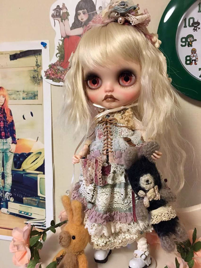 今回のジゼルは幼い感じで でも、すんごい冷酷な表情を見せちゃったり それでも、やっぱり幼くて あどけなかったりと かなりいろんな表情を見せてくれる子に なりましたわん。 正面ピンク目はいつも好きな アイなんだけど、 今回特に、まつげとの関係と ちょっとガチャ目なのを生かしたのとで 「ジゼルの狂気のピンクアイ」と 勝手に命名しております.:゚+(u_u*).:ポッ+ オークションページは こちら「tenko*Nightmare in the doll basket*Giselle」 26日土曜日の夜11時ちょいと過ぎに終了です。 お時間あったら覗いてねん。 |