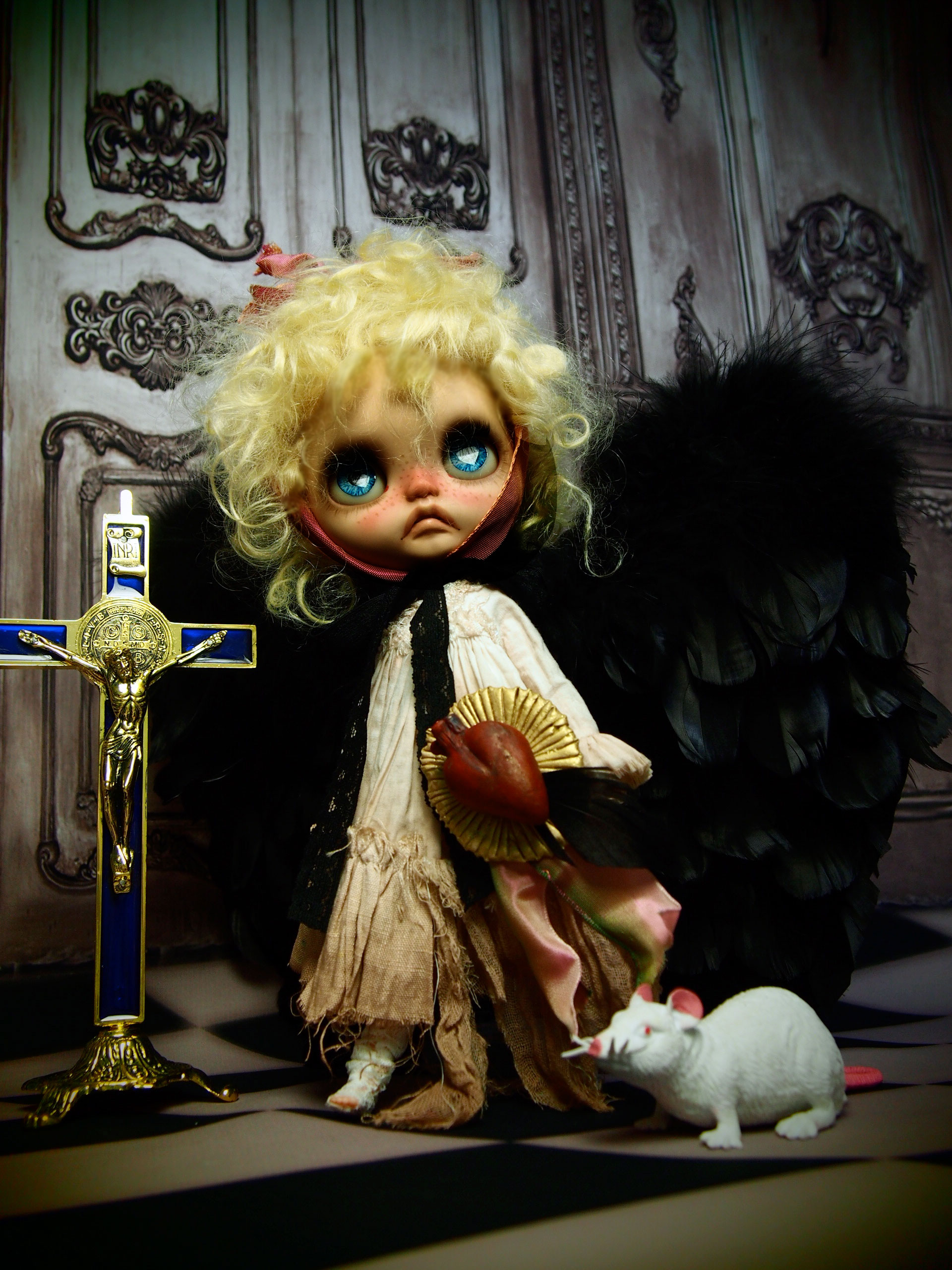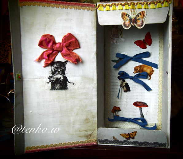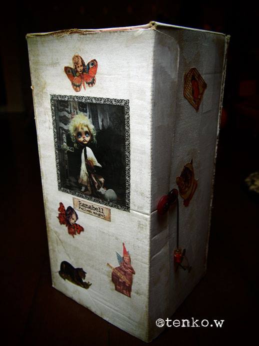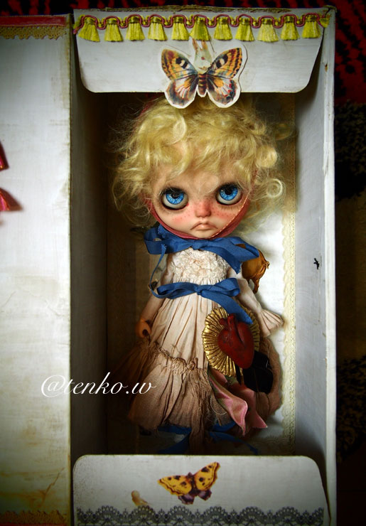 収納ボックスも作りました。 開けるとこんな感じ でもって、収納。 うさぎチョウチョがヘアアクセみたいでかわいい(笑) ふる〜いお人形のボロボロになった紙の箱。 あんなイメージで作りたくて あえて、ちょっと薄めのダンボールの箱で 作ってみました。 蓋の裏のリボンとネズミをくわえた猫が 今回、チョ〜お気に入り❤️ あとは、箱に、この子の名前いれるかなぁ。 どうしようブツブツ…( ̄ε ̄;[壁] これで付属品は全部できあがり。 (;〃@∀@)、ハァハァ あとは、撮影、出品業務だ! ***追記*** やっぱり、ボックスの蓋に名前を貼りました。 名前は「Ranabell」 堕天使のラナちゃんってとこでしょか(笑) PR