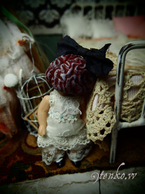なので、「記憶の断片」ついてきます.: *:( *´艸`).:゚+ 「記憶の断片」は自作の鳥かごの中に♪ テンカスが集めていれました(笑) そして、以前から紹介している「脳みそ*ブレイユ」 (「ブレイン」という名前にしようと思ってましたが どうも「ブレイン」というと男の子を連想するので 「ブレイユ」にしてみました) ブレインのブレイユ ドロワーズも履きました(^_^) ちょっと、アンニュイにうなだれたりもしてみます。 黒いリボンが脳みそ肌に似合うpupu (* ´>艸<)・:∴ それから、ペンダント 右下の白っぽいのは、「ハエ」 夜光で、暗い所でボンヤリと浮かび上がります。 そして、ヘッドアクセ こんな面々が付属の「ブツ」で ございます。 ちょいとご紹介いたしました<(_ _)> しっかし、今日も寒い。 夜にはやっぱり雪になるのかしら。。。。…(((((:Д;)トホホ PR