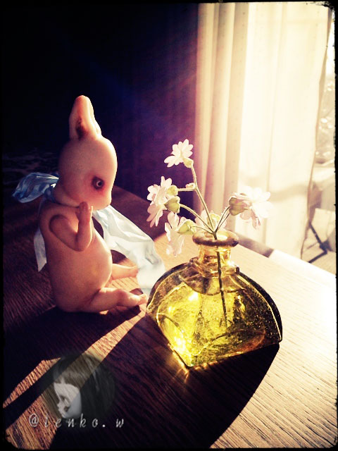 ブラブラお買い物にはピッタリな日でした。 目的のミレービスケットを買うを果たして 中道通りをずぅ〜っと向こうまで歩いたりとか。 で、なんか買ったものといったら昨日は、 食材とかお惣菜とか、食べるものが多くて 人形関係のモノとかって全然、買わなかった。 で、お人形関係じゃないけど 中道通りをずぅ〜っと歩いていった所に 先週の日曜日に開店したばかりというお店(名前、忘れた)で、 すんごい惹かれるガラス瓶があったので それをゲット。 太陽の光を受けると色々と違った表情を見せてくれる♪ ベランダのサクラ草を生けてみました。 でもって、吉祥寺パルコ35周年だとかで イベントをやってて、その中でアニメを流してるらしいのだけど その、ドルハが公開されてたので子供たちに混じってガン見(笑) 知らないアニメだったけど こんな時計台とか、おはぎ谷にあったらいいなぁ〜とか妄想.: *:( *´艸`).:゚+ どうやら、「カリーノ・コニ」というアニメの世界をつくったんだってさ。 「カリーノ・コニ」??? (?''?;) 知らないぞっと。 と、youtubeで検索してみたら、ありました♪ 「イマイチじゃぁ〜ん」って思いながら見てたら いつの間にか、「♪ピィザぁ〜、パスタ、ピザ、パスタ〜」と 口ずさんでしまっていた(笑) 欲を言えば、キャラクターがいかにもパソコンで創った3Dってのが 残念だなぁ。。。 世界観とかお部屋とかそういうのかわいいのに。。。ブツブツ…( ̄ε ̄;[壁] 興味あったら「Carino Coni」でyoutubeで検索してみてね。 時計台は第一話から出てくるし、お部屋の中は第三話で明らかになってる♪ と、何、私はカリーノ・コニの宣伝してんだよ(;´▽`A`` このアニメ見てから、ドルハ見たら、もっと感激してたかもpupu (* ´>艸<)・:∴ インスタグラムにはもうアップしてるけどT子の画像もアップ。