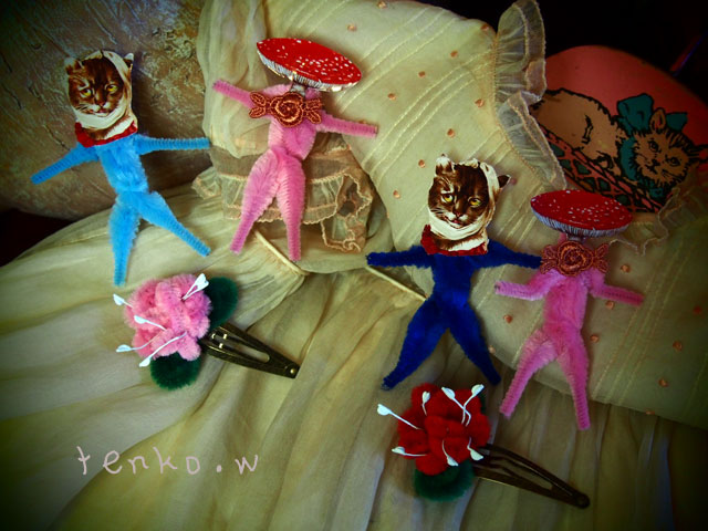 すんごい恐縮なのですが(;´▽`A`` 初売りのおまけ、できました♪ モールで手作り、小物でございまする<(_ _)> 以下、おコメちゃんの紹介でよろしくです。 おコメ「まずは、モコモコフラワーパッチン止めだわさ」 おコメ「みんなには、赤かピンクのどちらかをお届け、そして」 おコメ「モールドール!」 おコメ「私の大好きな包帯猫ときのこ人間のペアセット」 おさらいです(笑) ↑のモコモコフラワーパッチン止め、赤またはピンク、と 包帯猫ときのこ人間のモール人形ペアの3点セットになります。 どちらが、どっちのワンピのおまけかは、 到着してからのお楽しみぃ〜! ( ̄ー+ ̄)ニヤリ…。 *******拍手コメへのお返事******* ゆ********様 ハーイ(〃^O^〃)ノ.: *:・ ちょっと、まだ時間が空いちゃってますけど 「待ってる時間」も楽しんでいただいているとのこと ほんと、嬉しいです♪ で、その「待ち時間」にちょいとプラスで ↑に、もし、ゲットしてくださったら(人‘ー‘☆).:゚+ どちらが、お手元に届くかも、ニマニマと楽しんでくださいねぇ〜( ̄ー+ ̄) フフ…。