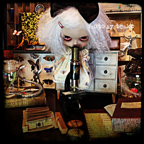 (ちゃんと調べたら2010年でした。) 西洋アンティークの顕微鏡が欲しくて ヤフオクをずっと見ていた事があった。 けど、それなりに、高騰しちゃう 西洋アンティークな顕微鏡(;´д`)トホホ… ふと、見ると、日本のかなり古い顕微鏡と プレパラートが一杯、セットになってる 出物を、確かぁ。。。。。3000円弱で発見。 ま、とりあえず、入札しておくか。。。と しておいたら、落ちちゃいました。。。。的な。。。 ( ̄^ ̄;)ウーン ありがちな。。。。。 すごく欲しかった顕微鏡じゃなかったから あんまり出番とかなかったんだけど 探し物してて、ふと、 けっこう遊べる? ってな具合で、ダンボールの中から救出してきました。 おコメちゃんは、結構喜んでる様子(*´艸`*)♪ 文句言いながらだけど。。。 おコメ「あのさ、顕微鏡って、立って見るんだっけ?」 みたいな(笑) 箱もちゃんとあって、不思議な感じのパッケージ。 人形撮影の小道具としては使えるよね(^o^)v で、その探し物というのは、古い時計。 これまた、随分前にヤフオクでジャンク品ばかりの セットを2500円だかで落としたモノで 引っ越しからこっち、行方不明だったのだ。 最近は、スチームパンクの流行なんかで 時計の部品は人気で、ジャンクといっても 部品取りで、こういう類いの時計も けっこう上がったりするんだよね。 この量で。。。あの頃は安かったなぁ。 っと、これで、引っ越しから3年。 行方不明だったものは全部、出てきた!!! めでたし、めでたし(笑) で、昨日、サミットへ行ったら、 期間限定で「すいかクッキー」発見。 「すいかモノ」が好きな私は 即買い。 それが、なかなかイケルんだよねぇ〜! よくまあ クッキーで、すいか味を再現しようと 考えたなぁ〜っと、感動(笑) 皆様もどこかで、出会ったら、 一度、お試しアレ.: *:( *´艸`).:゚+
