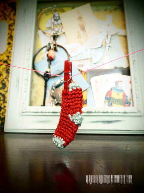 ブティック社の「かぎ針編みのミニチュア小物」という 本を見ながら、ソックスを初めて編んでみた。 そしたらミ(ノ;_ _)ノ=3 バタ... 無惨な結果に(;´д`)トホホ… なので、今日はリベンジ! 指定より太い糸で編んでるので バランスが悪いのかとも 思って、足首の方をちょっと長くして 慎重に編んでみた。 実は編み図も読めない、おバカなのに 挑戦するという無謀モノ(´>ω<`) ウッ… でも、なんとか、なんとか、できたぁ〜! で、おコメちゃんにあげることに(*´艸`*)♪ と、言われ。。。。 そして……。 と、も、言われミ(ノ;_ _)ノ=3 バタ... ちょっと凹みまするが とりあえず、おコメちゃん、貰ってくれた(笑) 次は(いつだ?)細い糸で挑戦してみたい! 夕べは雪にはならなかったけど 今日も雨。 めちゃんこ|Д`; )))ガクガクブルブル寒い。。。。。 明日は、お友達のうちでナベパーティ。 晴れて暖かくなって欲しいなぁ。。。 |