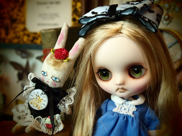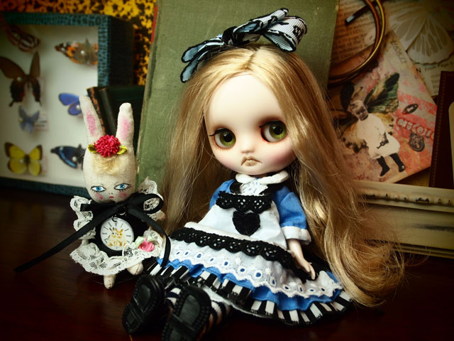 あと、瓶に「drink me」のラベルを貼って 真ん中のお猫様をちゃんと貼付けて できあがりぃ♪ もっとゴチャっとしようかなっとも思ったけど スッキリと(これでも(笑))仕上げてみました♡ アリスペンダントは、装着するとすんごいかわいいのぉ~。 と、自画自賛なんですが トルソーだとあんまり伝わらない???かもぉ(;´Д`) ちょっと残念。 今週にはショップにあげてプレビュー 来週に販売にこぎつけたいっす! でもって、RJちゃんのフォトブックの ブライスのかわいさに刺激されて 今日は、ルリヲと遊ぶ。 ピンク目の左の下の方から 白内障が進みはじめてるけど(+_+) それでもそれでも、やぱ、ルリヲはかわええなぁ~アウアウヽ( ;´Д`)ノ と親ばか(〃∇〃) てれっ☆ ベランダにエノコロ菜園初めました(笑) 去年の種から成長し始めてる、多分、エノコロ草な子たちは 日々、お猫ズに刈られて、なかなか成長しないので また、道ばたから、根っこごと採集したの。 なんか、ベランダが草っぱらになったみたいで いい感じだ(*´艸`*)♪ いや、けっして、野草をベランダで栽培するのが趣味じゃないんだけど これも、お猫ズのためさ(;´▽`A`` さて、また今週も始まりました! 頑張りすぎないように、ガンバッテ、生きましょうファイトーー! ( ゚ロ゚)乂(゚ロ゚ ) イッパーーツ!!