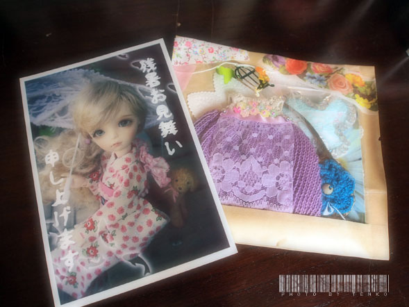 雷空。 さっき、ザ〜〜〜ット雨が降って ちょっとおさまった感じだけど 1日、こんなお天気なのかなぁ(~_~; 夏休みやらでたまった、大物洗濯を一気にしたかったのに あいにくのお天気じゃぁねぇ〜(;´ー`)┌ で、この前、tricotさんでブラOFをお買い物。 繊細なニット中心のお店で 編み物全然ダメダメ子な私にとっては そのリーズナブルなお値段もだけど 今回はバッグとちょうちょのヘアアクセもセットなのもあって お買い物させていただきましたよん。 パッケージもかわいくて すみれちゃんの残暑お見舞いのポスカも同封+:。ヾ(o・ω・)ノ゜.+ まずは、赤毛前髪モッサリの6行子の 翡翠が♪ セットのbag。ちゃんと小物を入れることもできちゃうの。 ブルーのアイとおソロのお花付き。 そして、スケデのDECO ふんわりしたOFがDECOのふんわりヘアに ぴったり。 そして、最後はおコメちゃん 最近、制服とか、私の試作で作ったOFとか そんなのばっかりだったので かわいいミニ丈(わかめちゃん丈)のワンピを 着て、ちょいとドヤ顔だよね.: *:( *´艸`).:゚+ 胸元のこれまた繊細なお花のスパンコールが 乙女心をくすぐるよねぇ〜。 tricotさんのショップは「こちら」 さてと、今日の夕飯、何にしようかなぁ。。。 (-ω-; ムム… それと、ジェリベリさんちもお休みが明けて 「腰砕けに」なってた(笑)業務も 通常に戻ったみたいで、ショップの方を 覗きに行ってきた。 やぱ、かわいいよねぇヾ(>д< #))((# >д<)ノ゙ でも、あとちょっと待てば「秋子バージョン」が 出てきそうな気もするし。。。。。 もうちょっと待つかなぁ……。 (ー'`ー ; )迷う。。。。。 あ、そうだ。晩ご飯用じゃないけど 小栗旬がCMでやってる「冷やしだしそうめん」 夏休み中のお昼にやってみた。 (。・_・。)(。. . 。)ウン(。・_・。)(。. . 。)ウン 美味かったよぉ〜♪ ちなみに、我家はオリーブオイルじゃなくて ゴマ油で♪ |