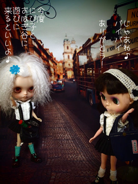もう1枚ゲット♪ この前、jちゃんが遊びに来てくれた時に 「なかなか出ないんだよねぇ〜(~_~; ebayでもさぁ」 と、ebayの画面を開いた途端に 「Inspired by your recently viewed items」 の所に即決49.99ドルでUSEDが出てるジャナマイカぁ===!! で、もう1着(いや、ドールも一緒だけど 既にヤフオクに出品したぜ!)増えましたぁ♪ ほんでもって、おコメちゃん、リセ帰り パン子に呼び止められました。 パン子も同じ、リセの生物学科♪ この前オーダーした自分お誕生日プレの 背景布の1枚。 リセ帰りのおコメちゃんがいつも通るバス通りで ここからバスに乗っておはぎ谷へ帰るの図。。。 を撮影する時に使う1枚。 それと、これまた街に出た時に立ち寄るであろう そして、誰かとお話するであろう街角 この2枚は一番小さいサイズをオーダー。 が、しかし、なんか、他にチョイスしたものの中に もっといいのがあっただろう(~_~; な感じで、イマイチ、こう、パッとしないじゃない??(笑) たくさんの中から選ぶってほんとに難しい(;´▽`A`` たいてい、ものすごく多くの中から選んだモノって 「これじゃなかった気がする」 っていう気分になるよねぇ??( ̄▽ ̄;) 今回、どれもそんな気分なんだけど。。。。ヌゥ<(;~▽~) で、制服トリオ あ、今週は今日もお休みで 先週のような怒濤の週にはならなかったです。 ε-(´▽`) ホッ しかし、湿気暑いの好きな私だけど 今日はほんとに暑かった。 光化学スモッグ注意報とか出ちゃったもなぁ。。。。