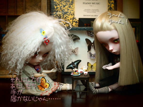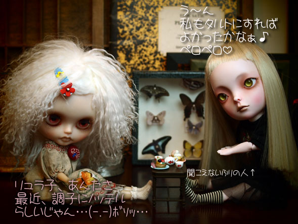 無事終了しました。多くの方のウオチと入札♪ ありがとうございました。 今回もまた新しい素敵なご縁を結ぶ事ができました(^o^)v そして、 カスタム出品完了! 今回は挑戦的なダークじゃなくて 陰鬱な感じかな。 なんか、またまた、画像がとっちらかって 何が何やら(;´▽`A`` ディス物が付属する時ってほんと 「てんやわんや」って感じだわん。 オークションページは こちら また、お時間ある時に覗いてねん.:゚+(u_u*). 今回の名前の「curious*キュリアス」は 「ちょっと不思議に思ってたんだけどね」 「ちょっと興味があったんだけど」 ってな意味の名前。 そして、 「時計をなくしたハッピバスデイの歌を歌うウサギ」 が、いるってーことは、その後の「A」っていうような 設定も込められてたりして(●>∇<●) 終了は木曜日です♪