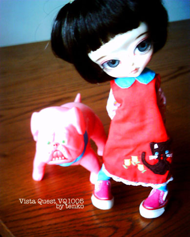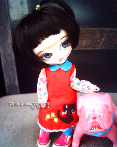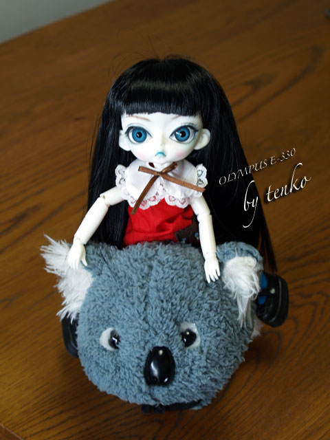 って思ってたブツ。 ダイソーで500円代の物だけど、まあ、間近になったらゲットすればいいや。 そう思ってた。。。 で、今日、買いに行ったんだけど。。。 !Σ(×_×;)ギャフン! な、ない!!!!!じゃぁ〜ん(i_i) 100均ってば、見付けた時に買っておかないと、再入荷ない物ってあるってこと わかってたハズだったんだけど。。。<(>o<)> で、ふと見たら、「てんこさん、あっしを連れて行ってくだせ〜」とどこぞから 呼ぶ声が。。。 ふと見ると。。。 トボケタ、顔の中心ズレたコアラ。。。(;´▽`A`` しょうがない。。。なぁ〜。。。とお目当ての物じゃない物を連れて帰ってきてしまった。 ううむ、お目当ての物。ネットで探すか。。。 本日は、ブライスのデフォ服は…… Hujoo dollのアジュラに。さすがに、Hujooは、手がデカイので、 伸縮性のないブライス類はNG。 でも、かわいいじゃん♪ 久々にVistaでも撮った。 はあ、なんだか、お目当ての物が買い物できなくて、気が抜けた。 そして、夜はそんな事がないようにしたい。。。( ̄^ ̄)V>え? |