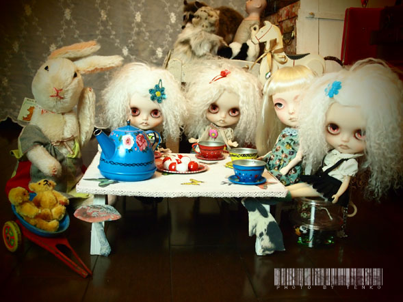 月曜日からスケジュール一杯で 忙しかったからあっという間に終わったけど やっと土曜日ってな感じ(笑) しかし、昨日今日となにこの寒さはぁ〜〜!!! っていうくらい寒くてブルブル…{{{{(;>_<)}}}}…サムイ… 夏は私にとって大好きな季節でしかも私にとっては 短い季節なのに、その間の2日間も損した気分だヽ(`Д´)ノ そんな怒濤の1週間だったけど runちゃんからアンティークのミニョがぁ♪ かわいいポスカのペタリとされたお箱の中に!! (//艸//) …ムフ♪ ここに立たせたら、もうずっと前からディスされてたみたいに シックリきたり うちのミニョ姉妹が3姉妹になっちゃうわけで♪ ワ——゚..。+:☆。q(〃・ω・〃)p☆゚・*:.。. .。.:—イ rちゃーんm(*>▽<*)m アリガトッ と、週の始めに癒されパワーを貰い! 週の半ばには、ほんとにひっさびさにjちゃんが 遊びにきてくれて、ちょいと日にちは経過しちゃったけど またまたお誕生日をお祝いしていただいちゃって♪ ワ——゚..。+:☆。q(〃・ω・〃)p☆゚・*:.。. .。.:—イ jちゃんm(*>▽<*)m アリガトッ と、またまたパワーを貰って、 週末までがんばってこられたぁ〜〜〜!!!! で、おはぎ谷で おコメちゃんの従姉妹、メリさんとソメさん、そして、 またまた従姉妹くらいの存在になるのだろうか???(笑)な 実日子ちゃんとの4ショット+ミハギさんの、お茶会。 そして、リュラ子、ラレ子、実日子ちゃん+ミハギさんの、お茶会が 開かれました♪ ああ、やっぱり、お人形遊びすると テンション上がるし、いろんな事を ウントコショと越えていける気がするねぇ〜!!!! もちろん、友と逢う! これも、同じように、有効!!! そして、来週もまた怒濤のような1週間の予感。 だって、仕事もまだ「お休み」日があるお知らせが ないし、月はまたお友達来るし、木曜日は美容院だし……。 また、あっという間に、やっとな来週の土曜日が くるんだろぉなぁ〜(笑) ******拍手のお返事****** 久々の日記だったもんだから 拍手のお返事、書くの忘れてたぁ(≧△≦) ごめんなさい<(_ _)> Mちゃん (*´艸`*)♪ ねこって最高にかわいい生き物だよねん!! ねこがいなかったら、私はきっと こうやって生きてないかもだし 旦那とも、とっくに別れてたと思う(笑) うちの家庭の場合 「子はかすがい」ではなく「(=^.^=)はかすがい」だわ! |