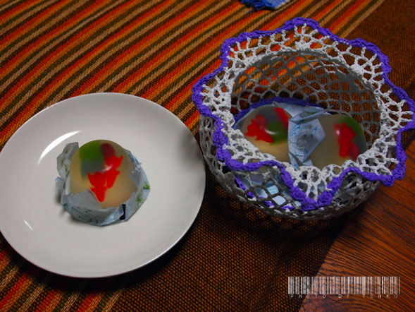 サンシャイン水族館&F59の「天空の庭 星のなる木」お食事飲み会 で、リニュしてから初めてサンシャイン水族館へ行ってきましたよん。 サンシャインで一番大きな水槽。 この中に、アニマル柄のエイさんが居て 一目惚れ♡(笑) そして、もちろん、一番のお目当ては クラゲさん クラゲのトンネルとか、天井クラゲ水槽とか 円柱クラゲ水槽とか、ずっと見ていても飽きない感じで (一人で行動してた(笑)) 外の鳥さんのショーが見られなかった(*´Д⊂ グスン… 鷹とかふくろうさんとかサンシャインを飛んでたんだってぇ。 ほんでもって、動いてなかったからてっきり 剥製だと思ってたナンチャラトカゲさん。 水族館ってほんとに、大人になっても充分に 楽しめるところだよねぇ〜。 涼しげだし♪ で、その後のお食事会。 さすが59F、すんげー眺めよくって お酒もおいしくて。。。。。なので画像ってば 一枚もないぜ(笑) 翌日は、仕事が辛かったぁ〜〜〜〜(;´▽`A`` そんで涼しげつながりで、ちょっと前に お友達から頂いてた 金魚のお菓子。私が金魚好きなんで 送ってくださった。m(*>▽<*)m アリガトッ ほのかなレモン味のゼリー。 ほんとに涼やかなお菓子です♪ 来年は、今度、自分で買おうぉ〜(〃・ω・)ゞえへへ で、我家に夏休みの間に、来た セイヨウニンジンボク。 ほんとは、戸外で育てるのがベストな木なんだけど ベランダや室内でもある程度、大丈夫と言われて うちは、室内で育ててるわけで(いずれは 落葉するので、ベランダへ出すけど) でもって、このところ、床に 細かい黒いポチポチが落ちてて 花が少し残ってたし、見てみると そんなポチポチが花からこぼれ落ちてる風で 「種なのね」 って思ってたの。 で、まあ、種は嬉しいけど、散らかるし と、花はもう終わってるので、 全部、摘み取って、でもそれでも黒いポチポチが 落ちてる。 しかも、日が経つにつれて、そのポチポチが 大きく成長してるじゃなぁ〜!! って、事はぁ〜〜〜!!!! >*0*< キャ——ッ 芋虫さんが居るって事ぉ〜〜〜〜〜〜〜!!!! 旦那くんは、「種」を主張してたんだけど こりゃ、絶対居るなぁと、一生懸命探したら いましたぜ!!! その画像アリなので、たたみます。