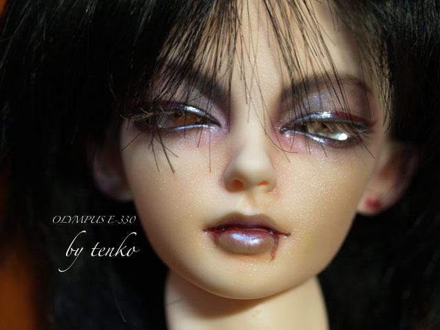 お昼間のオークションでかなりお得なお値段でゲットしました。 しかも、すんごい綺麗なメイク。 NANURIヘッドはヴァンパイア仕様で、小さい、牙がついてます。 わかるかしらん? すんごい小顔なので、13SDに装着するとちょっとバランスが悪いので、 Zitoのボディに装着。 本来の色はあんまり変わらないんだけど、メイクがかなり濃くて お顔の方が色黒に見えるかな(笑) ヘア、重ッ( ̄▽ ̄;) ヴァンパイア仕様なので、やっぱ、黒マントなOF。 とんがりお耳にブルーのズラで「ラララ無人くん」ごっこ(笑)←古ッ! 彼がヴァンパイアなので、DIMさんのKassia余計にお迎えしたくなるかなぁ〜って 思ってたんだけど、彼のヴァンパイアを見て、かなり満足したっていうか。。。 なので、踏ん張れそうだす。 彼の名前。 「堕奇羅@ダキラ」にしようかな。 ドラキュラ→ドラキラ→ドキラ→ダキラ。。。なんちゃって(⌒o⌒;A |