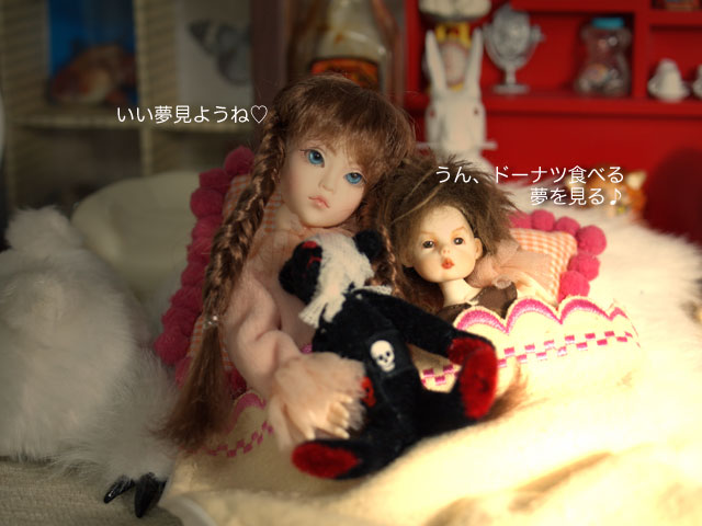 またんさんのソファーキットを今日仕上げる気分になっていた。 で、切り込み入れて、綿を貼って、さてさて、布を裁断しようと。 でも、全部裁断する前に、1パーツ裁断して、試してみようかなぁ〜と……。 そしたら……。 う、薄いミ(ノ;_ _)ノ=3 ツートンのベロアっぽい生地なので、透けるなんて全然予想もしてなかった。 クウ。。。。。涙。。。。。 なので、また生地選びをしなくちゃだわぁ〜。。。。。 ま、全部切ってから、気がつくよりは良かったという事で、 買ってきた生地は気に入ってるんで、また何かに使えばいいか。。 でもでも、すんげーやる気満々のこの気持ちってば、 ホゲ〜〜〜〜〜〜⌒⌒⌒⌒⌒/(x~x)\ 一気に急降下。。。。 なので、珠羅とカルラと遊ぶ。 珠羅ったら、右手が不自然だけど(;´▽`A`` (アップしてから気がついたのでご容赦) 秋だもの……。 強気な珠ちゃんも、時には誰かと一緒に眠りたくなるのよね♪ しかし、なんだか、気が抜けたなぁ〜。。。。。 |