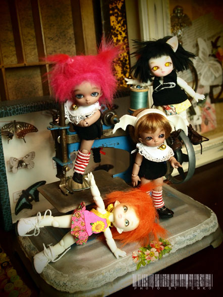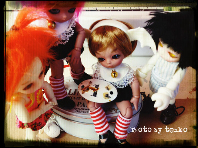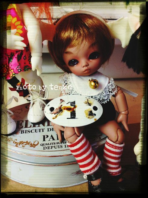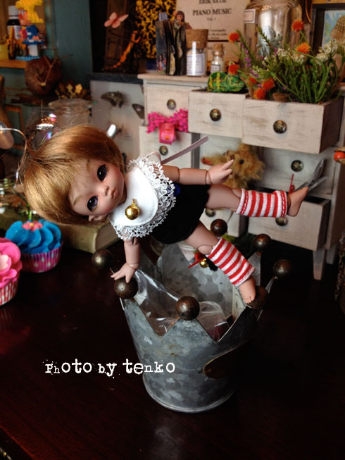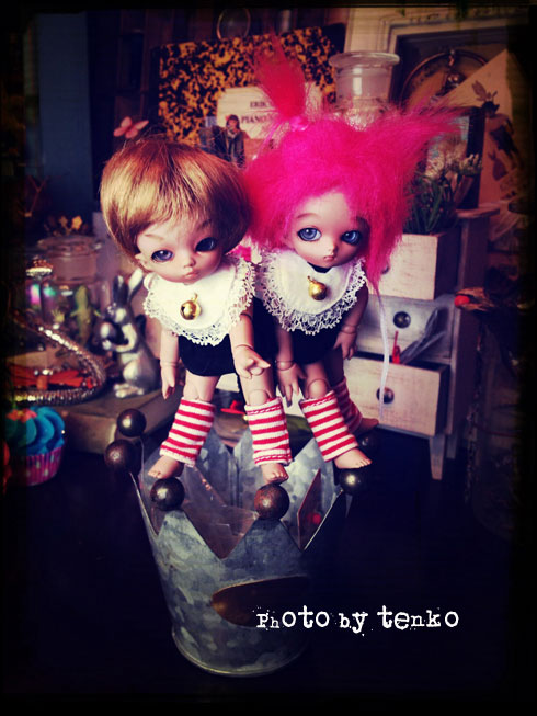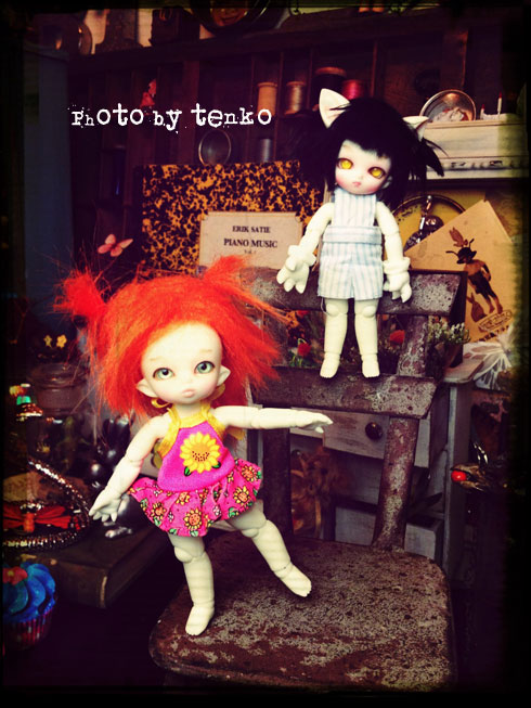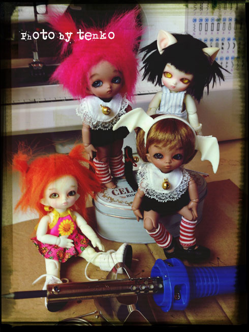 行って以来、ハンダゴテが欲しいなぁと 画策しておりました。 でもって、やっとこさ、マイ・ハンダゴテ、買いました。 ガンガンに使うわけじゃなくて、ちょっと金属を ハンダで汚したり、金属に熱を加えたりするくらいに使うので めたんこ安物を買ったら、スイッチないモノだった( ̄▽ ̄;) ケチらないで、スイッチくらいあるモノを買えば良かったような 気もするけど、まあヨシとしましょう。 電子パーツを組み立てるわけでもなし 金属と金属を接着するなら、接着剤を使った方が 確実だったり簡単だったりするわけだし(笑) でも、ハンダゴテのハンダのムニョっとはみ出した感は 独特のモノがあるので、欲しかったの。 さっそく、なんかやってみたくて、100均の ナンバープレートに汚しをかけてみたり。 ワークショップでは完全に使い方をマスターした! と、思ってたけど、時間も経ってるからか なんか、まだよくわかんないやってな調子で 汚しをかけるというか、汚いだけだし<(;~▽~) でもって、金属となれば、この子たち! 金属の上でなら、すごいアクロバットを繰り広げてくれる♪ さすがに、小さい球の上では、2人で支え合わないとだめだけど こんなスタイルなら1人でも大丈夫(^o^)v 糸で吊ってるわけでもなんでもないんだよぉ〜(*´艸`*)♪ そう、知ってる方はご存知、彼女たちの手足には 磁石が入っていて、磁石がひっつく金属の上でなら 絶妙のバランスでアクロバットをしてくれるのだ♡ (すごい技はちょっとこっちにテクニックと集中力が必要だけど) *******拍手コメへのお返事******* m*****様 初めまして!!! いつもご覧頂いているとの事!! 感激ですぅ〜〜〜〜(≧∀≦) そして、きらら舎さんのファンでいらっしゃるんですね!!! ネッ(*´ 艸`)(´艸 `*)ネッ あそこは素敵ですよねぇ〜。 なんだか、こうやって遊んでいたら、また「欲しい熱」が ムクムク出てきて、ポチっといくつかやっちゃいました(笑) こんなブログではありますが、楽しみにしていただけて ほんとに嬉しいです♡ これからもよろしくお願いいたします.:゚+☆(o´・ヮ・`o)ニコッ♪