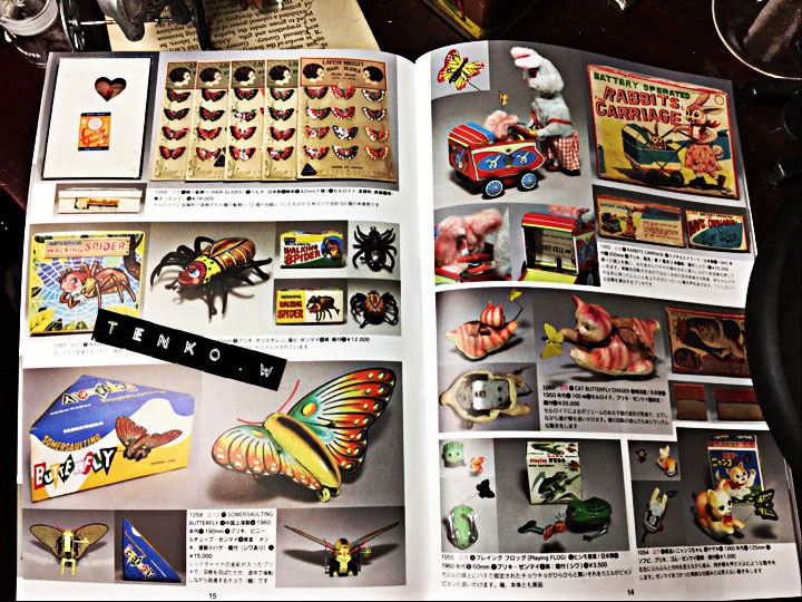 オークションカタログ79号が到着ぅ♪ この表紙だけでもウットリとしばし眺めてられる.: *:( *´艸`).:゚+ ダイブしてる人がいるけど(;´▽`A`` ページをめくると、特集が「昆虫」なだけあって 昆虫のおもちゃとが一杯。 左上の蝶のおもちゃのヘアアクセ。 かわいいしぃ。 蛾みたいな蝶とか、蜘蛛さんとか、ウサギさんにネコさん (ノд<。)く〜っ!たまらんねぇ。 パッケージも渋い!! 右ページは誰だ? と、見てみると、コガネムシだって。 ハエかと思った(笑) 左は上は長めのテントウムシ。 虫とブリキ好きには目の毒だわ(^_^;A この子は口を開けながら、しかも鳴きながら進むハチさんとテントウムシさん。 35000円からの開始価格はなるほどだね(´。`;)ゞ トホホ… あ、いや、入札はしないよ、しない(。・_・。)(。. . 。)ウン 見てるだけで、眺めてるだけで 楽しい、このカタログ。 あ、もちろん、他にも漫画とかね。 いろんな分野が掲載されてるんだけど 意外にも「ドール」は今回は 某クスの「ローゼンメイデン」シリーズとワンオフの子が 数体だけと、全然、少なめ。 ドールが特集の時もあったのかしら(  ̄^ ̄) トオイメ… あ、いやいや、入札はしないよ(。・_・。)(。. . 。)ウン 全320ページ始めと終わりに折り込み付きの なかなかのボリューム。 じっくり見るには時間もかかりそう。 なかなか満足な1冊でした。 PR