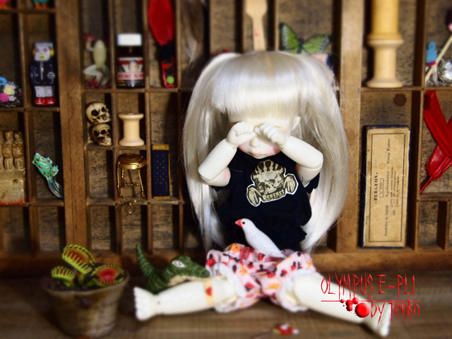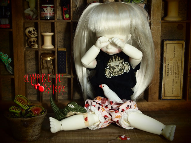 アリスのウサギに近づくには、やっぱりお洋服だなぁ〜っと。 自分で作るのには気温が高すぎる(笑) 何か代用衣装はないかと考えていたら……。。。 Σ(・ω・ノ)ノ! そうだ!! 白猫クリスの衣装、使えるんじゃねーの??? ってな事で無理矢理着せてみますた。 帽子は仕方がないので、やっつけ自作。 なんかそれらしくなってきたかも(笑) で、昨日、楳図かずお大先生の映画「赤んぼ少女」観ました。 ホラーだけど、すんごく哀しいお話。。。 ってか、ホラーってーのは、哀しい話があってこそ成り立つわけなのだと なんだか納得。 原作もちゃんと読みたくなっちまったぜ。 たまみちゃん、かわいい.: *:・ ((/ω\*))