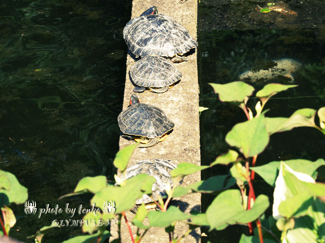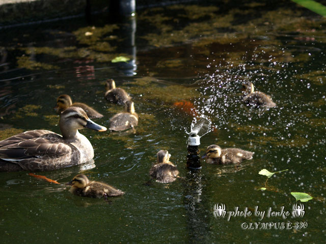 「てんこは望遠レンズって持ってないよね?」 と言われて。。。。 「そうだ、望遠レンズだ!」 と、急に思い立ち、ネットでお安くゲットいたしますた。 で、うちの近くの病院の池にカルガモ(これ、ずっとカルガモだって 知らなかった、今日初めて側にいたおばさんに教えてもらった)を 撮影。 このカルガモ親子。 結構、有名カルガモらしく、地方の新聞にも載ったことがあるんだと。 でも、なんか、このカモ。年中いるんだけど、 カルガモって、渡り鳥じゃないのか??? しょっちゅう見かけてたので、 我家では「不渡り鳥」とちょっと営業不振の 中小企業の社長が聞いたら、顔をしかめそうな 不名誉な名前で呼ばれておった。。。 カルガモ親子で、望遠試し鳥、いや、撮り(笑) 安い望遠なので、これくらいが限度だけど、 それでも、これ以上に性能の良いのは、 ムリ。。。。 だって、重いんだもん。(⌒o⌒;A 残念だったのは、トイカメラで撮ろうとした時の方が みんな元気に並んでくれてたこと。。 ま、また撮りに行ってみましょか。。。