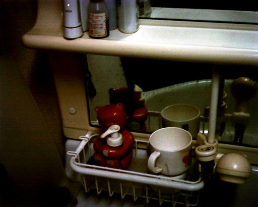 不忍口(丸井とヤマシロヤのある口)から、稽古場までは、御徒町の方へ向かって歩くのだけど、なんとなく、所どころでパシリとしてきました。 まずは、駅構内の花屋さん 上野駅を背にして 丸井と食べ物屋さんの間を入った所の道 影は浮浪者のおっちゃん その同じ道 途中のゲーセン。アンニュイな兄ちゃんがd(-_^)Good!! とにかく、「精力」な薬局 ここを渡るとキムチ横丁が近い、もうすぐ稽古場 稽古場、すぐ近くの「キッチンジロー」のサンプル。 本物が並べてある。 フレーミングまたズレてるし(;´▽`A`` そして、稽古場到着。 地下への階段 なんだか、猥雑な街、上野は、ヴィスタで撮影するのに もってこいの街のような気がする。 また今度、ちょっと足を延ばして「上野 デ ヴィスタ」してみよう。 昨日遅くに到着した「VQ1005」 なかなか面白いヤツです。 まず、大きさはトップ画像で見てもらうとわかるように 閉じた状態で6センチ(以下)×4センチ(以下)と非常に小さい。 で、噂には聞いていた、スライドさせて開けるのがなかなか手強い。 っちゅう件に関しては、うちにきたVISTAは、なんとスムーズに スライド!!! まずは、クリア。 で、4MBの内臓メモリを持っているのだけど、電源を消した段階ではもちろんデータは消えないのだけど、電池がなくなった場合、データが消えるそうだ。 なので、マイクロSDカードを別に購入しておきました。 なんか512MBとかって書いてあったけど、1Gでも大丈夫。 それに、システムが「Windows 98SE/ME/2000/XP」とあって、まあ、旦那君のWinで遊ぼうと思っていたんだけど、USBで繋いでみたら、Macでも全然平気じゃぁ〜んヾ(@⌒▽⌒@)ノ。 ちなみに我家は10.3.9です。 さてさて、まずは1枚目 なんでこうなてるかってーと。 シャッターを押してから、少したつと「ピ〜ン」って音がするんだけど この時点ではまだ終了してなくて、次に「ポーン」って音がして、 それで撮影終了。 それをちゃんと理解してなくて、「ピーン」の時に動かしたもんだから、 こんな画像に。 電源を入れてからすぐだとこの「ピーン」がなるまで すごく時間がかかるし、「ポーン」なんて、忘れた頃にやってきたりする。 で、2枚目 被写体を真ん中に写すのが難しい。 ファインダーってついてるんだけど(あ、液晶画面なんてもちろんナイッス)これがあてならない。 自分がどのあたりを撮ってるかは、慣れるしかないみたい。 あるブログには「心で撮る、スピリチュアルなカメラ」って書いてありました。(;´▽`A`` なんか、ミニチュアみたい。。。 なんか、場末のスナックか純喫茶の洗面所みたい ザットちょっと撮ってみました。 ウフフ。。。なんかノスタルジックな画像で良いねぇ〜。。。 で、なんとこのヴィスタ。動画も撮れます(音声なし) これはまた後で挑戦。 しかし、ほんとに、電池の消耗が早い(単4が1本) なので、エネループとかにすると良いとも書いてあったけど、 とりあえず、単4の安いのを大量に買い込みました。 だってエネループ自体が、まだ安くないよね???? てな具合でこのヴィスタを手に入れるには。 プロキッチン http://www.rakuten.co.jp/prokitchen/1975559/ 現在、ソールドアウト。来週には入荷とか?? ヤフー支店 http://store.shopping.yahoo.co.jp/prokitchen/vista-quest.html 支店の方は、ピンクならまだ買えます。 で、ヴィスタについて、もっと、いっぱい知りたい方は http://redpop.jp/vq1005/ ↑のブログがお勧め。 ヴィスタのヘタレさとゆるさをこよなく愛してる方が 運営されているので、ヴィスタが好きになること請け合い。。。 デジイチとはまた違った楽しみ方のできるこのヴィスタ。 携帯電話より小さいので、こりゃどこへでも連れていけまっせ! 以上の画像は、サイズ以外は、まったく画像処理をしておりませんのよ。。 |