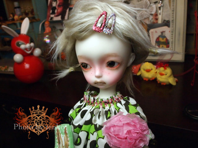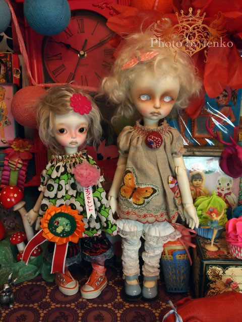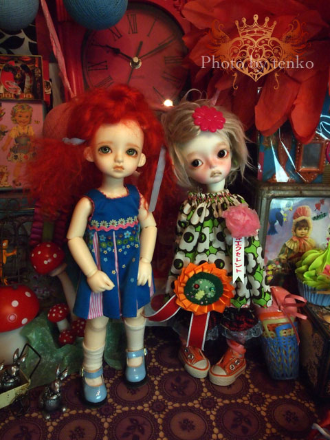 カスタムしておりますが(ほぼ完了♪) サイズ比較です。 サイトの方に、裸体な比較はあるけど うちのノバラと一緒に 2.2だと、親子? な感じだけど2.6ぐらいだと 姉妹ってな感じになるよね。 それから、ブライスと ほぼ、背丈は一緒な感じで お友達♡ で、かなり近いのがローゼンリードさんの 火曜日子。 手足とかは、2.6の方が細い。 でもって、火曜日子が着ている ブライスのフィービーメイビーのワンピ 火曜日子よりも、余裕で着られる。 スリンキーネコさんの子たちにも近いサイズかな? ブライス、幼SDともに、手が入れば どちらのサイズも着られる子って事になるね♡ もちろん、ブライスのパンツとかは ウェストがダメで入らないけどね。 足のサイズは幼SDより小さくて 一時期、ハヤってたブライスのスニーカーの紐を解いて 履いたら、ジャストサイズ。 ウィッグは幼SDサイズだし、かなり手持ちの物で 間に合う子だって感じ。 さてさて、カスタムも完了に近く 後は全体的に整えてっと♪ 今回は 「うさぎ谷」で開催された「きのこ狩りコンテスト」に ゾウさんとピヨコ2羽と一緒に出場して エクセレント賞を頂いた というシチュエーションがあります。 こんな感じで(*´艸`*)♪ 髪トメはやぱ、お花の方がかわいいかな♡ 全体に直しいれて、撮影したら 今週中に奥田氏だぁ~!!! *******拍手コメへのお返事******* M様 (*´艸`*)♪ 今週中にはシュピーン予定です。 2.6サイズはどうなのよ? って、ドキドキしてましたが けっこう、遊べるかわいいサイズです♪ 今日、明日と撮影、 がんばります.:゚+<(*゚ー ゚*)>.: *:・ |