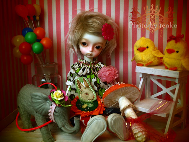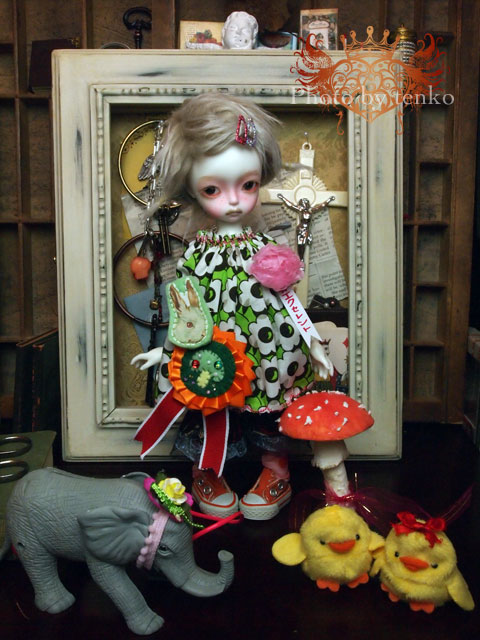 ヤフオク出品完了しました。 最終的にはこんな子に ウィッグも久しぶりにボアウィッグ アレンジしようかと思ったけど お花のパッチン止めで 普通にパッチンで出品。 「きのこ狩りコンテスト」のシチュエーションも ヤフオクには書かないで、ブログを見に来てくださった方との 共有って事で.: *:( *´艸`).:゚+ もう1回、書いておこう。 「うさぎ谷」で開催された「きのこ狩りコンテスト」に ゾウさんとピヨコ2羽と一緒に出場して エクセレント賞を頂いた♪ ってな、シチュエーションです。 あ、比較日記は紹介したけど ブログそのものをちゃんと紹介してなかったから 後で、追記しておこう。 オークションページは こちら お時間あったら覗いてねん。 終了は金曜日の夜11時半ちょっと前です♪ *******拍手コメへのお返事******* f様 ありがとうございます。 今、さっき、出品しました♡ アウトフィット、おまけ程度なんですけど 一応、今回はシチュエーションありで 付属品が充実?! してます(笑) M様 ありがとうございます。 そんな風に言っていただけて 本当に、ほんとに、嬉しいです+:。ヾ(o・ω・)ノ゜.+ 今回はシチュエーションありなので 楽しんでいただけるかと.:゚+(u_u*).:ポッ+