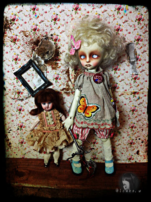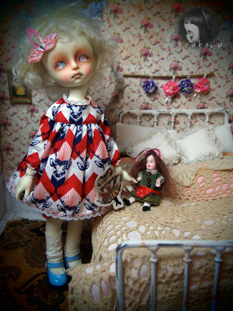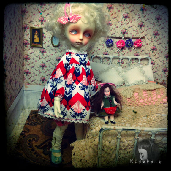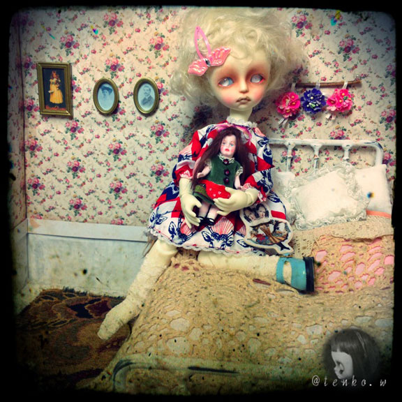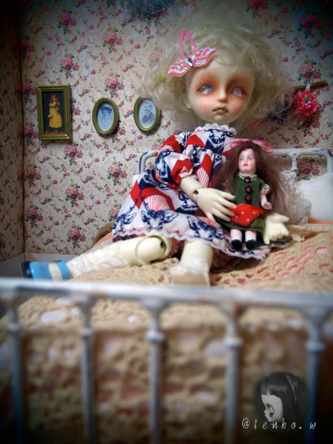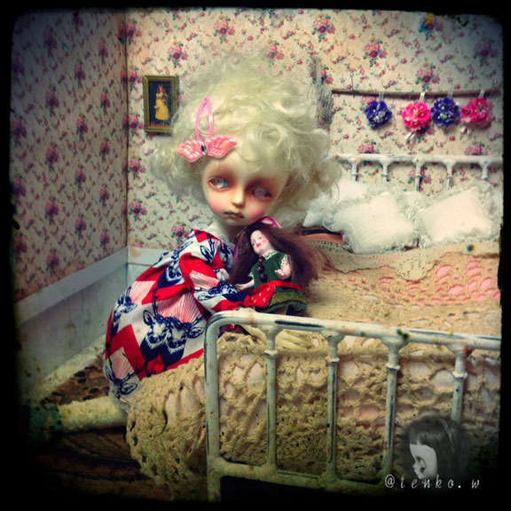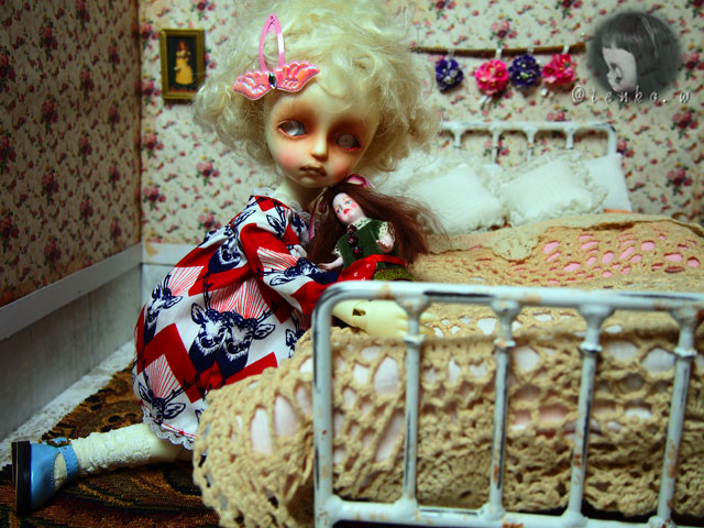 「他に頼んでいる人が具合が悪くなったので テープ起こしの追加をお願いできないか」 と、メールが入っていたミ(ノ;_ _)ノ=3 バタ... でも、私、遊ばなくちゃだから.: *:( *´艸`).:゚+ きっぱりとお断りしました(笑) で、この前から作ってる廃墟の新居! 裏面に「ブナシメジ」と 入ってるダンボールが原型になっているので 「ブナシメジ」が なんともはや、眩しい(笑) そこで、裏面も貼っちゃったらいいかも ならば、リバーシブルドルハにしちゃえばいいかも! ってな事で、裏面のお部屋も急遽製作。 こんな感じで♪ こっちも、廃墟風にするつもり。 そして、ベッド。 ふうむ、こうやってアンティーク風のドイリーを しつらえてみれば、これはこれでいいのかも。。。 っと、アイアンのアンティーク調ベッドの購入を 悩みに悩んでいる私。 今日は、買おうかしら、という気持ちが ちょっと沈静化しておりまする。