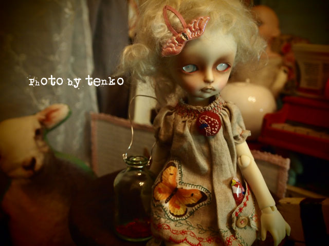 皆様のお住まいの場所は、大丈夫でしたか? 関東では、まだ時折、雨風が強くなったりして 明日の朝までは、ちょいと台風の影響を受けそうです。 風が強過ぎるので窓を開け放っておくと、いろんなモノが 飛ばされる(;´▽`A`` でも、閉めると暑い( ̄▽ ̄;) 開ける、閉める。を、⊂((‘⊥‘))⊃サルのように繰り返しておりまする。 で、アメリア(imda3.0)のOFセットを製作中。 アメちゃんにはアリがって事で、アクセにアリ付けてみました。 シロアリだけど〜〜〜〜〜(/ ̄▽)/ 〜ф" (モデルはモディ子のノバラ) 明日からは、暑い夏、戻ってくるみたいですね。 この2日、関東は避暑地に居るように涼しくて、涼しさを堪能したので(笑) あとまた、逝く夏を惜しんで、夏を満喫だぁ〜!!! って、てんこさん! 遊んでばかりじゃ、ダメよん(〃∇〃) エヘっ。