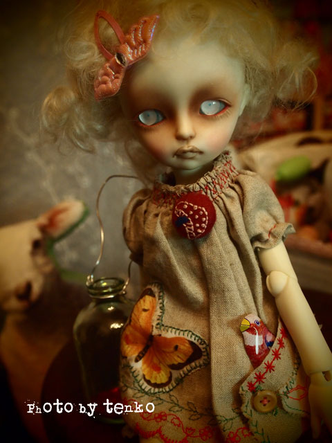 そして、メイク途中経過のご報告です。 いつもの濃い妖しい系ではなくて、 淡い妖しい系を目指したつもりなんですが(〃 ̄▽ ̄〃)エヘッ 装着しているアイは、今回また自作してみました。 もうちょっとメイク変更あるとは思いますが 今回はこんな路線で♪ 今までのimdaっ子の傾向とはちょっと違った路線でございますね。 では、もうちょっと、仕上げに向かって がんばります。。。タタタッ。ヘ(;・・)ノ *******拍手コメへのお返事******* M*******様 台風。雨はさほどでもなかったのですが 風が強くて(;´▽`A`` いつまでも、強い風が吹いていたので 両方の窓を開けておくことができず 片方の窓だけ開けていて、でも、それだとちょっと蒸し暑くなり でも、全開しちゃうと、風が強過ぎ。。。 ベランダの植物も心配だったり。。。。と まあ、それぐらいで、こちらもそんな大事には至りませんでした。 M様のところも、大丈夫だったとのこと 何よりでしたε-(´▽`) ホッ さてさて、今回のimdaっこのアメリア。 ちょっと今までとは、傾向が違う感じの子に 仕上がりそうです。 とは、言っても、自分でそう思っているだけで 傍からみると、「どこが?(?ω?)」ってな事って あると思うのですが、自分としては、 薄めメイク.: *:( *´艸`).:゚+ どんな子に仕上がるか、楽しみです。 本日、チラ見せでございました(〃 ̄▽ ̄〃)エヘッ