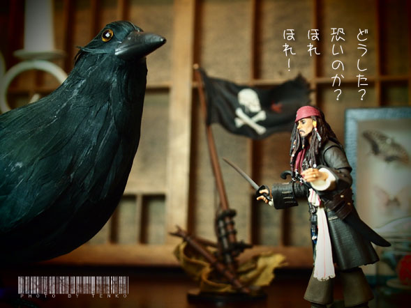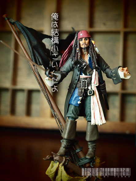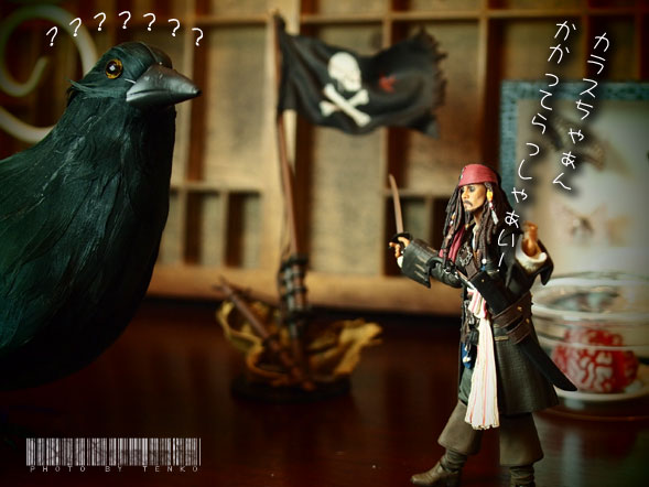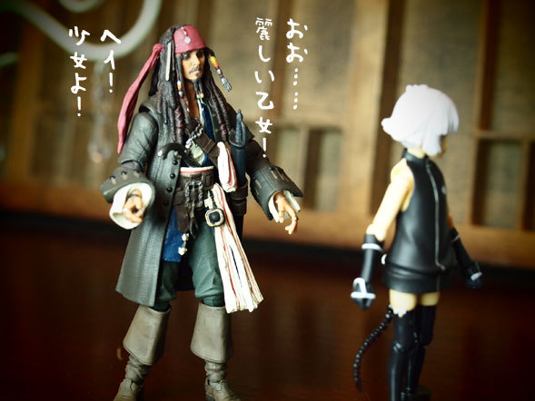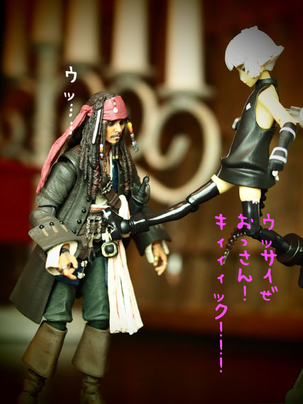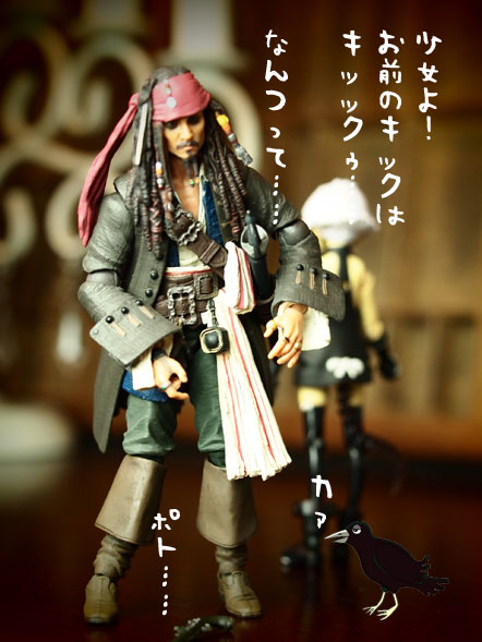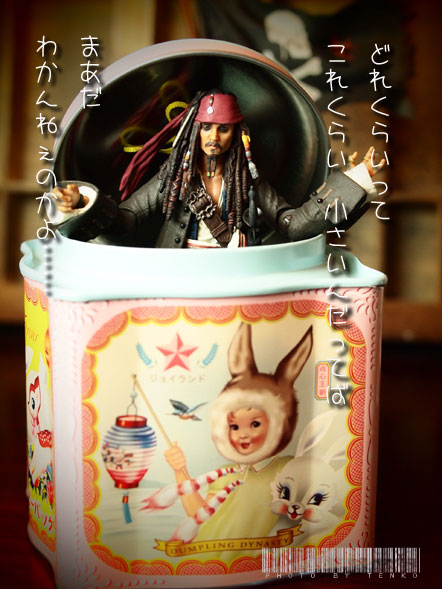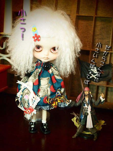 ありがとうございました。 入札を頂いた方、ウオチしてくださった方 見守り隊の皆様、ほんとに.:゚+d(感´∀`謝)b.: *:・です!!! 終了間際まで、 「あれま」と思っていたら、 あれよあれよと多くの方に入札いただいて ほんとに、ありがとうございます!!!! 皆様にチュ―― Deep(〃 ̄(* )Kiss ――ッ♪ 「チュウはいらんから」 と言わないでねんpupu (* ´>艸<)・:∴ でもって、我が家にジャック・スパロウ船長がやってきました。 COCOちゃんちにいる、デッカイジャックも すごく欲しかったんだけど、お値段かわいくないし…… と、思ってずっと我慢してたんだけど それでも、やぱジョニのフィギュアって一人くらい 欲しいなぁ~と……。 他の物をちょいと探してたら みつけちゃったぁ。 2000円で!! 海洋堂 特撮リボルテック ジャック・スパロウ(パイレーツ・オブ・カリビアン) 似てるような、似てないような(^_^;A でも、これほんとに小さいのにここまで作り込まれてるのは 脱帽!! しかも、可動式。 一発しか入ってない銃とかちゃんと持てるし 羅針盤とか、細部がすごく凝ってる! だけど、ほんとに小さい! 頭なんて、ブライスと比べられないくらい 小さいでしょ(笑) リボルテック。可動式なんだけど、なんか 慣れないとサクサク動かせないよぉ(≧∀≦) これから、色々と活躍してくれそうな船長だす!! 我が家の船長は、まあ、似てる方なのかな? 個体差が激しいらしいっす(笑)