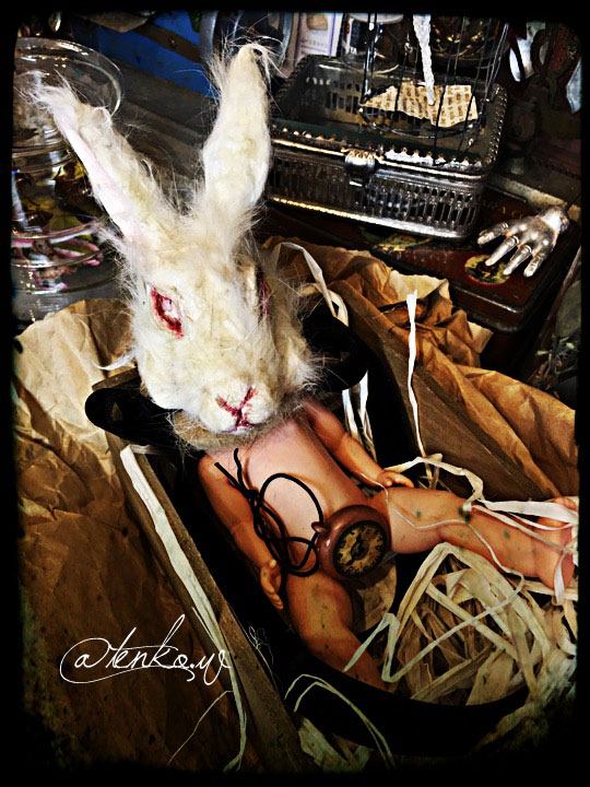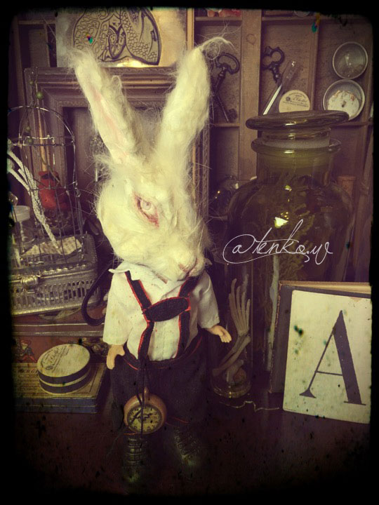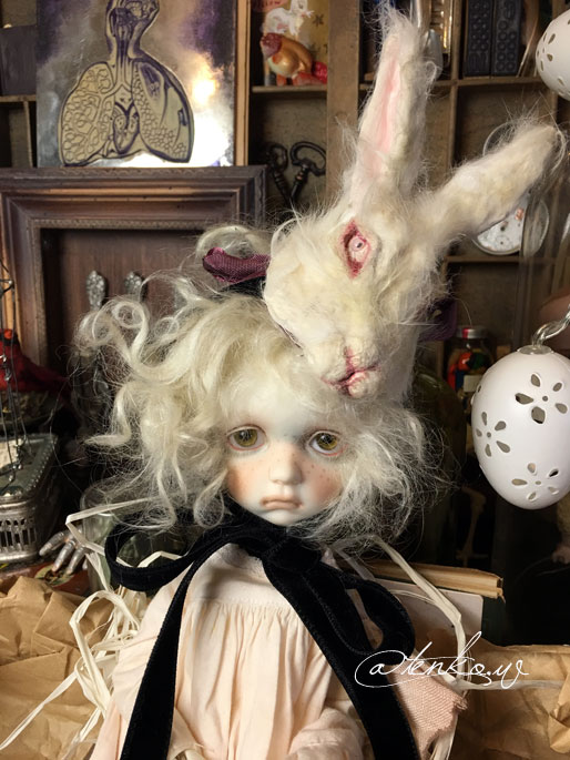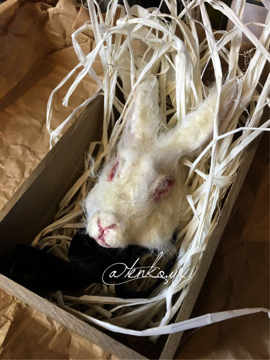 一つ目鳥でしたが、 今年、最初にやってきたのは ドール用のうさぎのヘッドアクセサリー。 妖しくて、にくたらしくて 素敵でそぉ〜〜〜〜(≧∀≦) これは、Instagramで仲良くしてもらってるrucoさんの作品。 (rucoさん、それは素敵な個性的なかわいいブライスをカスタムされる方どす!) ご自分用に作ってらしたのを目撃して 素敵だねぇ〜! 素敵だねぇ〜! と、しつこく騒いでいたら、我家にやってくることに!!!!! (あ、もちろん、ご自分用とは別にね、作ってくださった(^o^)v) ワーイ♪ゝ(▽`*ゝ)(ノ*´▽)ノ ワーイ♪ さっそく、ラコルが装着。 (/▽\) イヤン めちゃくちゃ、素敵ぃ〜〜〜〜! で、その後、やってらしたお箱に戻したら ボディが生えてた。 。。。。な、わけはなく、ちょうど、うちにボディだけで 転がっておった、このボディ。 ちょうどいいかもぉ〜! って、装着させてみました。 そしたら、あら素晴らしい! アリスの時計うさぎの登場!!! ってな具合になっちゃって! rucoさん、素敵よ、このウサギさん! キモくて、おっさんで、そこがもう、 我家にピッタリ!!! ほんとに、ほんとに、ありがとうございましたぁ〜!!!! なんだか、なんだか、年末年始、 新しい方々は増えてます(//艸//) …ムフ♪ PR