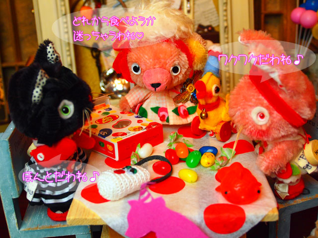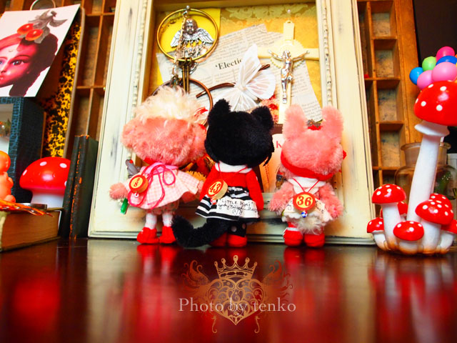 税関に4日間もお泊まりした子たちが やっとやっと昨日やってきました。 でもって、ちゃんと関税、取られたしぃ。 5%弱。 でも、開封はされてなかったε-(´▽`) ホッ いや、開封されてもいいんだけど、そうすると もうちょっと時間がかかったのに違いない。 以前、キャッスルアンネの子が、やっぱりそうで、 開封されてて、1週間近く、お泊まりして しかも、アラレモナイ格好で到着した経験がある(笑) でもって、さっそく、開封祭りぃ~~!! (*´艸`*)♪ これを見たら、どなたの子をお迎えしたのかわかるよねん♪ そうです。 Jodyのお子たち♪ まずは後ろ姿を3人で(笑) では、二人をご紹介。 うさぎさんのPinky-Pink我家では 「うさみ」ちゃん そして、黒猫のMiss Mimi我家では 「クロエ」ちゃん として、それぞれ、おはぎ谷に暮らす事になりましたん♡ ピナコをお迎えして、Facebookでお友達になっていただき 「サイトの子ってお迎えできます?」って お尋ねしたら、 「その子はもう居ないけど、同じような子、作ってあげるよん」 って事で、 「ほんじゃ、うさぎも猫もぉ~!(≧∀≦)」って お願いしたら、心良く引き受けてくださった(*´艸`*)♪ もう、3人揃ったら、可愛すぎるぅぅぅ! さっそく、おはぎ谷での生活を。 「変な猫」(*´艸`*)♪ お気づきの方は、もう誰かわかったよねん。 てなことで、うさみとクロエ、 よろしくです。