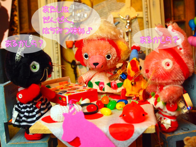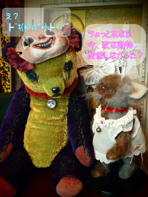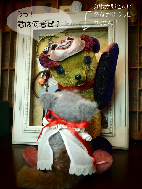 やっと、決めました。 「みゆ太郎」 え? (*'д'*) 全然、ひねりないじゃぁ~ん(;´▽`A`` これにはちょいとわけが(笑) え? もしかして、これってあの 有名な?「イウォーク」?????!!! と、みゆ太郎は思いました。。。。 アジュリーナ「違うから、私、アジュリーナよ♪ よろしくね」 ってな事で、おはぎ谷に「アジュリーナ」がやってきちゃって(笑) 「あじゅ」が居るなら、「みゆ」も居ないと ダメでしょ? って事で、なんか、ノホホォ~ンな感じがどことなく みゆに似ているような似ていないようなってな事で 「みゆ太郎」さんに、なっちゃった、クマさんでした。 さて、これで、ゴブ姫とアジュリーナ そして、クマさんの名前も無事、決まって 11月から再始動する、おはぎ谷 ワクワクしてきました♡ で、今さ、見直したら画像では 「アジュリーヌ」って言ってて 文面では 「アジュリーナ」って言ってる(;´▽`A`` どっちにしようかしら。。。ヾ(>д< #))((# >д<)ノ゙ やぱ、「アジュリーナ」にしよう。 明日、画像、差し替えだわ(笑) *******拍手コメへのお返事******* M様 さすが、もう馴染んでしまっているのですね(*´艸`*)♪ そして、ドールハウス、到着なのですね.:゚+(〃‘∇‘人 ワオッ☆.:゚+ どんなドールハウスでどんなお話が展開されるのだろう! (*´∀`*)ワクワク もしブログなどにアップされました時は ぜひぜひ、お知らせくださいませねん♡ 長くオークションをやっていると 何故か、そういう時があって その子が強く行く所を望んでいる場合に多いかも??? と、ほんとに思っています(〃 ̄▽ ̄〃)エヘッ あ、でも、みなさん、リップサービスだと思うんですけどね(笑) ハイ(^-^)/ 10月末日で無事、仕事も辞められそうなので そしたら、一杯、遊んで、一杯、ドールの事をしようと 思っておりますので、よろしくお願いします! ほんとに、こちらこそ、.:゚+d(感´∀`謝)b.: *:・でございます!!! ヽ(*^▽^*)o<[.☆:゚+感謝.: ☆:]>o(*^▽^*)ノ m(o^ω^o)m