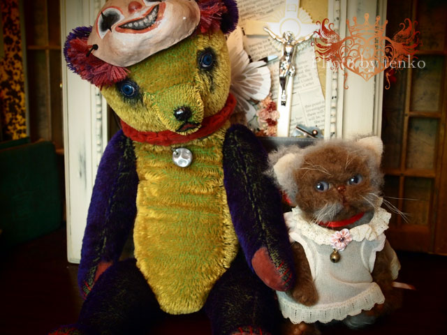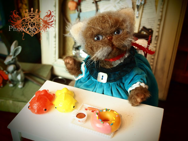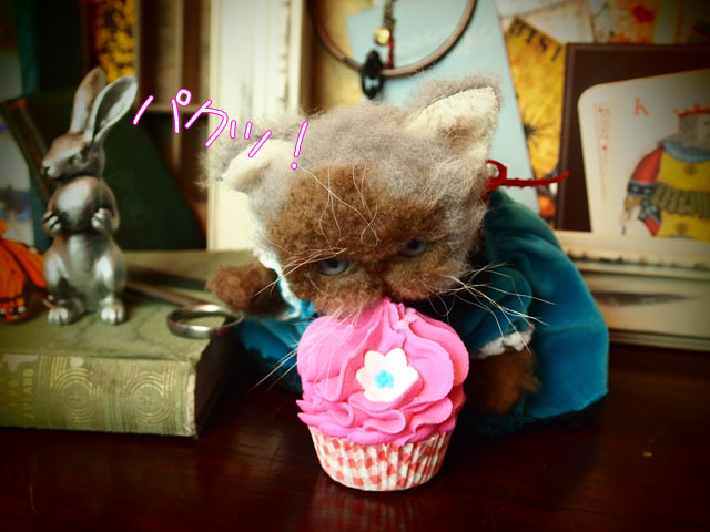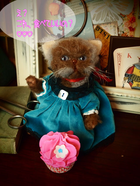 書いておきますかね♪ アジュリーナはAn-buのhi-さんという方の 作品です。 ニャンコの種類はエキゾチックショートヘアだそうで、 hi-さんちのなつみちゃんがモデルニャンです。 ぬいぐるみというよりは、クレイアートに モヘアがペタペタって貼付けてある感じに近く お腹に鳴く装置が内蔵してあるので 鳴きます♡ おヒゲが風に揺れて、ピロピロしてる。 おヒゲがグチャグチャなところも あじゅに似てます(笑) 後ろ姿もすんごいかわいい♪ おやつ、これだけじゃ足りないそうで……。 大きいの食べる? (;´▽`A`` スイーツ好きもあじゅに似てたりする(笑) で、リアルあじゅも、「アジュリーナ」と 夕べから呼ばれるようになって まんざらでもない様子なあじゅ。 で、あじゅは、グルグルとグズります。 なので、リアル、あじゅ 「アジュリーナ・グズリーナ」 と、夕べから呼ばれておりまして うん? 誰かに似てる???? あじゅ「ルックスも似てると思うの(*´艸`*)♪」 と、言っておりますが、みんなに 「ないないブン( ;`-ω- ≡ -ω-´;)ブン」 と、言われて、ちょっとご機嫌斜めだったり(笑) みゆが 「じゃあ、ボクは『ミユピー』と呼んで!」 と、なんだか、分身がおはぎ谷に登場する事になったからなのか みんな、テンション高いです(*^o^*)