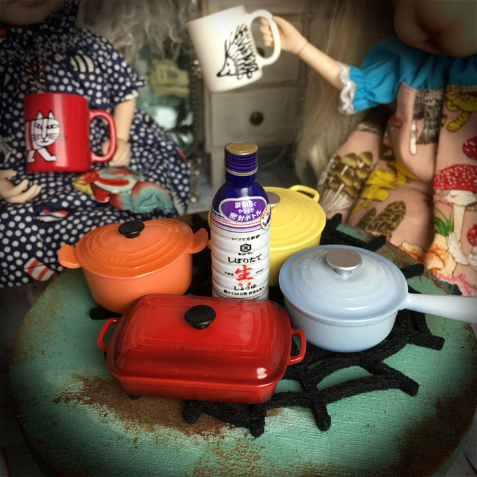 ル・クルーゼのお鍋を並べて うっとりしております。 おコメ「みすず、お鍋、一杯どうしたのよ?」 みすず「てんこのお友達のYUKOさんから、頂いたのぉ .:゚+はぁぁ…(*´▽`人 ウットリ.: *:・」 おコメ「へぇ~、みすず、お料理好きなんだっけ?」 みすず「え? Σ(○Д○ノ)ノ ? え?」 おコメ「だから、これからこれで、お料理してくれるんだ! 嬉しいだわさ」 みすず「え? ( ゜д゜)? え? な、なんで、 私が料理すんの?」 おコメ「だって、これ、お鍋でしょ?」 みすず「いやだなぁ、おコメちゃん。私はお鍋が、その中でも 特に、ル・クルーゼが好きなの!! つまり『ル・クルーゼ』マニア。 こうやって眺めてるのが好きなのよん♥️」 おコメ「( ̄− ̄)フーン しょうゆことね。。。。」 ってなわけで、じゃらんのにゃらん付きを無理矢理送りつけたら ちゃんと「しょうゆことね!」の キッコーマンの生しょうゆも.: *:( *´艸`).:゚+ 前にYUKOちゃんが紹介してたのを見て 「いいな、いいな」を 連発してたのを覚えててくれたのぉ~!!! キャ━━゚+.ヽ(≧▽≦)ノ.+゚━━ ッ ! ! ! m(*>▽<*)m アリガトッ しかも、(=^.^=)好きな私のために? リサラーソンのマグカップもハリネズミさんとで 2つ! そして、「さすらいのなんでも屋」ロビー 今まで携帯を持ってなくて 商品の受注とかそんなの ブルーのスマホまで頂いた!!! ヤッタね! これで、ますますお仕事がんばれるじゃん♪ YUKOちゃん、ほんとに、ほんとに アリガト━━゚.+:。d(≧ワ≦)b:.。.+.:━━ッ!! こういう小物がお人形遊びを ほんとにほんとにもっと楽しくしてくれる。 お鍋マニアなみすずさんは料理はしてくれないみたいだけど(;´▽`A`` YUKOちゃんに、感謝!!! そして、先日紹介した、「布きのこ」 案外、評判が良くて(〃∇〃) てれっ☆ 調子にのって、少量生産して(大量生産はできないからさ(笑)) ショップにあげようかと、 また、できあがったら、アップしますねん。 PR おコメ「ずっと自走式の掃除機が欲しくてさぁ」 みすず「ルンバとか?」 おコメ「そうそう、そういうの。高いじゃぁん?」 みすず「だよねぇ<(;~▽~) あ、ロビーに相談してみれば?」 おコメ「で、電話したんだわさ。そしたらさ……」 ロビーとは、店舗を持たず「さすらいのなんでも屋」をしている ホラーウサギでございます。 ロビー「アルヨ!」 おコメ「って事で、これが届いたの」 みすず「キャ━━゚+.ヽ(≧▽≦)ノ.+゚━━ ッ ! ! ! これって、BB-8じゃぁ〜ん!」 おコメ「そうなのよぉ! びっくりでしょ? ロビーの試作品なんだって」 みすず「え? (?''?;) って、パクリじゃん?!」 おコメ「(;´▽`A`` ま、そこはそれ、試作品だからさ。」 みすず「それで?」 おコメ「ああ。試しに使ってみてくれって、タダで貰っちゃっただわさ( ̄ー+ ̄)ニヤリ…。」 みすず「実力行使したのね ジーッ (¬д¬。)」 おコメ「人聞きの悪い事を言わないで!」 みすず「とりあえず、かわいいよね。でも、ほんとに、掃除してくれんの?」 おコメ「( ̄ー+ ̄) フフ…。やるのだわさ、これが!」 みすず「動いてるう! どれだけちゃんと掃除するのかは疑問だけど……」 おコメ「ネッ(*´ 艸`)(´艸 `*)ネッ かわいくて、これでお掃除してくれるなんて、夢のようだわさ!」 既におコメちゃんは、みすずさんの言う事なんてのは、聞こえていないようです.: *:( *´艸`).:゚+ おコメ「だから、お掃除の時間がなくなって、嗚呼! 色々と仕入れに行きたいなぁ。。。 .+:。ワクワク.:゚+(((o(^。^*)o))).:゚+ドキドキ♪.+:。」 みすず「心が完全にどっかへ浮遊してるわ(;´ー`)┌」 ってな事で、おコメちゃんちには、ロビーの試作品「BB-8型 自走式掃除機」が やってきました。 いいなぁ、いいなぁ。 ってかさ、もし本当にこの「BB-8型」の自走式掃除機が出たら 買うな(笑) で、おコメちゃんは、森とか街へ行って、 きっと妖しいモノをゲットしようっと 画策していまするね.: *:( *´艸`).:゚+ 私も、スーパーじゃなくて、街へお買い物&散策、行きたいなぁ(  ̄^ ̄) トオイメ…