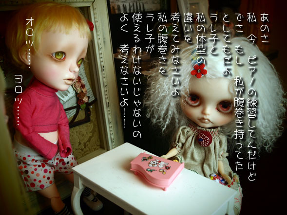 ラレ子。 リュラ子が聞いてみた。 うん? なにやらリュラ子の所にも、ニャンコが???? (*´σー`) ヘヘ… ドイツから猫が到着する。。。ハズなんですが(;´▽`A`` 追跡すると先月29日に「引受」までは日本のサイトでもドイツのサイトでも 追跡できるんだけど、それ以来、とんと更新されてない<(;~▽~) まあ、もうそろそろって ところかな? と、気長に待ちましょう(*´∀`*) ***拍手のお返事*** T様 やっとこさ、販売にこぎつけました。 作ってる間、楽しかったんですが、けっこう時間 かかっちゃって(;´▽`A`` でもってフレームの中のエンジェルは、ブローチではありますが lotta djossouのではなく、雑貨屋さんで買ったすんごく安い モノですよぉん.: *:( *´艸`).:゚+ ドールと一緒に写ってるモノたちは、私のお気に入りのモノばかりで ドールとこういうモノに囲まれているとほんとに心が落ち着きまする。 おかげで、部屋はゴチャゴチャだけど幸せ(笑) 金曜日、よろしくお願いいたします(o*。_。)oペコッ PR