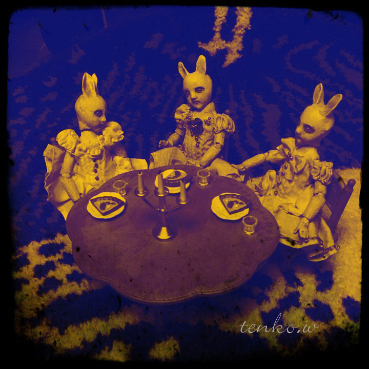 おはぎ谷の入り口の あちゃちゅむサクランボ女高原の左サクランボで 野営のパーティを開いております。 月はまだ出ておらず、ちょっと淋しい。 というのも、ここで3人は2人と1人に お別れなのでありました。 白ウサギ(仮)「ここでベージュちゃんとはお別れね」 ベージュウサギ(仮)「うん。。。。。」 ピンクウサギ(仮)「また、いつでも逢おうと思えば逢えるし」 ベージュウサギ(仮)「うん♪」 白ウサギ(仮)「ベージュちゃんもアリス探し、がんばって!」 ベージュウサギ(仮)「白ちゃんもピンクちゃんもね!」 ピンクウサギ(仮)「うん!」 ってな具合で、3人はこれから アリス探しをはじめるようです。 白ウサギ(仮)「あ、雲が晴れた!」 ベージュウサギ(仮)「ほんとだ!」 ピンクウサギ(仮)「ほんとだ!」 と、3人は、月の雫で乾杯をして 別れ惜しみ、これからの幸運を誓うのでありました! ベージュウサギ(仮)ちゃんと別れて いよいよ、白ウサギ(仮)とピンクウサギ(仮)は おはぎ谷で、アリスを探すことになったようです。 このお話はまたつづく。。。。 でもって、本日、iMdaワンピ終了日です。 <(_ _)> ほんでもって、まったく関係ないんだけど お菓子の袋をクリップなどを使わずに 閉める方法ってが。。。。。 どうにも、成功しません(⑉꒦ິ^꒦ິ⑉) ポテチの袋じゃなくて、おせんべいの ビニールの袋なんだけど。。。。 やぱ、パズルとか苦手な私だから できないのかしら(ノ_・、)シクシク… PR