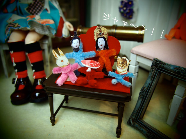 やぱり、風が冷たいので 吉祥寺行きは、金曜日、5月のような陽気になるらしいという日に 持ち越しにしました(;´▽`A`` で、日ざし温かで、ひなたぼっこ。 おはぎ谷、ぬいぐるみ部門選抜メンバーが 並んでおりますpupu (* ´>艸<)・:∴ 後ろ姿で誰かわかりまする? 向かって左から 修造、あけみ、アジュリーナ、カミユ、丸尾、みはぎ になります。 正面から♪ みはぎ「風は冷たいけど、春ねぇ♪ これで寒いなんて てんこは、やぱ意気地なしだわ(;´ー`)┌」 *******拍手コメへのお返事******* M*******様 前の前の日記にコメ頂いたのに、 お返事書くの、今日になっちゃった 申し訳ないです<(_ _)> ごちゃごちゃ部屋も、ごちゃごちゃだと 散らかった部屋ですけど、これを極めて もぉ〜、ごちゃごちゃごちゃごちゃにすれば もっとすごくなるかもですもんね♪ M様のお部屋は「アリス部屋」ですかぁ♪ きっと、素敵なんだろなぁ.:゚+(u_u*).:ポッ+ その中にテンカスも居られるなんて 幸せです。 一緒に、ゴチャゴチャゴチャゴチャ部屋、目指して 頑張りましょう.: *:( *´艸`).:゚+ てんこ「( ̄ー+ ̄) フフ…。今年はなんか そうやって聞かれる気がしてたんだ。 『あるよ!』 ほら!」 てんこ「(;´▽`A`` なに、何? みんな、何、絶句してるのさ? 『桃のゼック(節句)』 とかって、ダジャレ?」 おコメ「な、わけないでしょ!」 てんこ「えぇ〜! だって 三人官女もいるでしょぉ〜!」 てんこ「せぇっかく作ったのに ヽ(`ε´#)ノブーブーブー」 なんか、みんな気に入ってくれたのか どうかわかんないけど おはぎ谷にも「お雛様」が飾られ 桃の節句がやってきます♪ 昨年よりはちょっと遅かったけど、今年もSたんから頂いた サクラ草が咲き始めました。 春だねぇ! で、欲しい欲しいと思ってた、ユーカリ。 なんか、あんまり猫によくないって事で 諦めモードです。 |