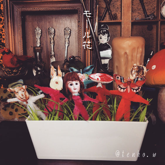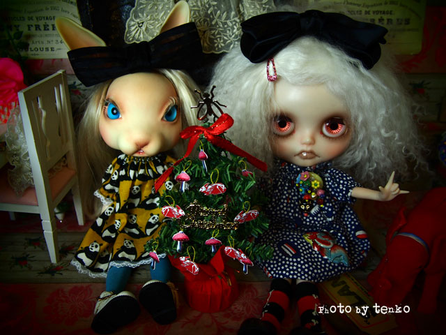 したら、こうなっただわさ♪」 みすず「迷ったけど、私はキノコ」 おコメ「私も迷ったけど、ウサギの骨格!」 (;´▽`A`` おコメ「そして、てっぺんは、2人の意見が合って ハエ〜〜〜〜!」 みすず「ハエ〜〜〜!」 今年はおはぎ谷には、この小さなツリーが飾られましたとさ。 おはぎ谷って季節感あんまりないからねぇ(笑) 人間用でも、キノコとか、うさぎの骨格とか肉とか 骸骨とか、そんなツリーを飾れたらいいのになぁと 妄想。(  ̄^ ̄) トオイメ… つか、それじゃあ、ハロウィンじゃん的なpupu (* ´>艸<)・:∴ 聖なる夜のためじゃなくなっちゃうか(;´▽`A`` 今年はツリーは飾らずに、 ヴィンテージのオーナメントは、 カゴに盛ってディスプレイ。 新人カミユがサンタさんになるらしい.: *:( *´艸`).:゚+ 今日は寒くて、大掃除、全然、はかどらず(~_~; 年賀状のプリントだけは完了したので、まあ、ヨシとしましょうか。 で、カミユのモデルのみゆ本人は あじゅことイチャイチャ❤️ 明日はもっと寒いんだってぇ〜!!! ブルブル…{{{{(;>_<)}}}}…サムイ… やぱ、冬は嫌いだ。。。(-.-)ボソッ… そして、お友達から「郵便ブツを飛ばしたよ」の 連絡を貰う。 もう3日前の話。。。 ( ̄^ ̄;)ウーン これは郵便事故だろうか。。。 (;´д`)トホホ…週明けに探してもらおう。 ちょっと、高まらず。。。。の出来事。。。 ドールとか、お迎えしてすぐって どうも、お互いにハニカミあってしまって 上手に遊べないって事があるけど ぬいぐるみでもそうなんだねぇ(笑) カミユは、そうだった。 この前、おコメちゃんと一緒に遊んでから(ご贈答の約束してた.: *:( *´艸`).:゚+) 一気に、ほぐれて、今日は、もうなんだか すっかり、おはぎ谷の一員だ。 お天気も良かったし♪ 年賀はがきのデザインは、一般の部も、ドル友の部も 一応完成したし♪ っつか、それは私の事だけどね.: *:( *´艸`).:゚+ やっぱり、お天気が良いのがよい! 寒いとね、気力も体力も、やる気も 奪っていくのよ。 特に、冬の(まだ秋?)雨はねぇ。。。 (;´д`)トホホ… 明日も温かいワーイ♪ゝ(▽`*ゝ)(ノ*´▽)ノ ワーイ♪ 先日のヤフオクのキロちゃんも、無事にあちらのおうちに到着して 気に入っていただけたし♡ 今日は、「ε-(´▽`) ホッ」が、たくさんあった日でした。 あ、それから、朝の連続テレビ小説の「まっさん」 絶賛、堤真一君! 出演中! 毎日逢えるぅ♡ (出てこないお話の時もあるけどさ) それも、ちょいとした幸せ♪ 「ε-(´▽`) ホッ」や「.:゚+(u_u*).:ポッ+」が ある日は、ほんとに、感謝感謝! |
